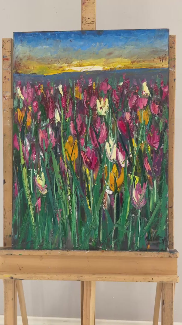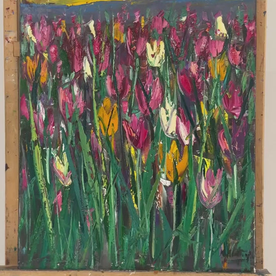 Lale Bahçesinde Sabah Yağlı Boya Tablosu