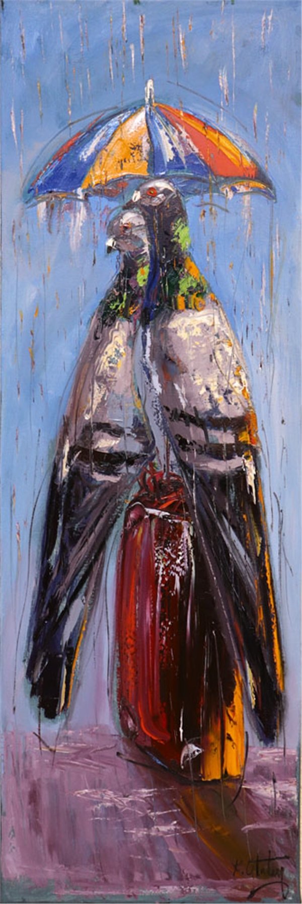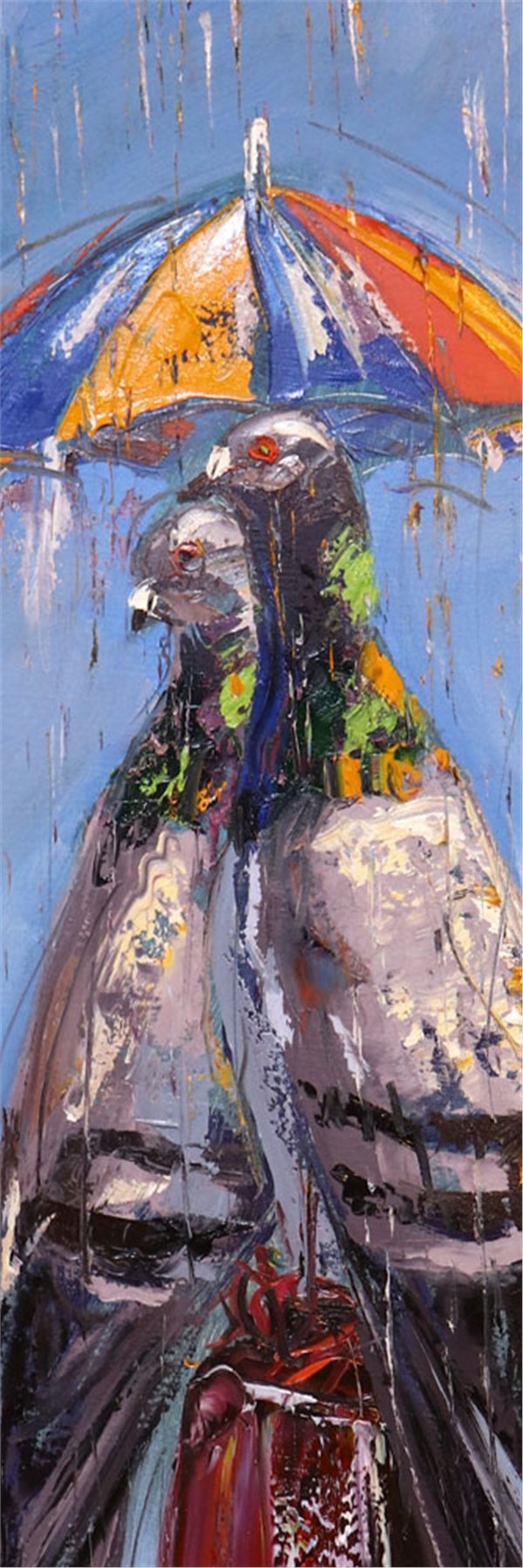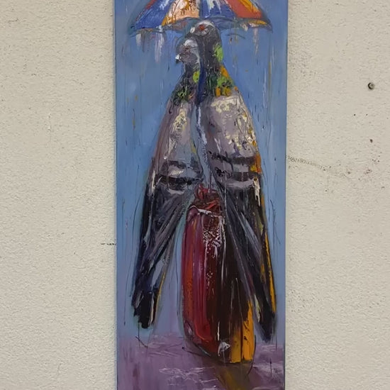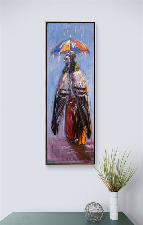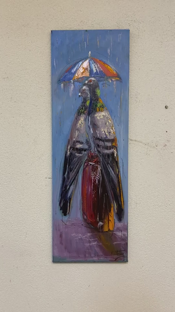 Güvercinlerin Yağmurda Aşk Yağlı Boya Tablosu