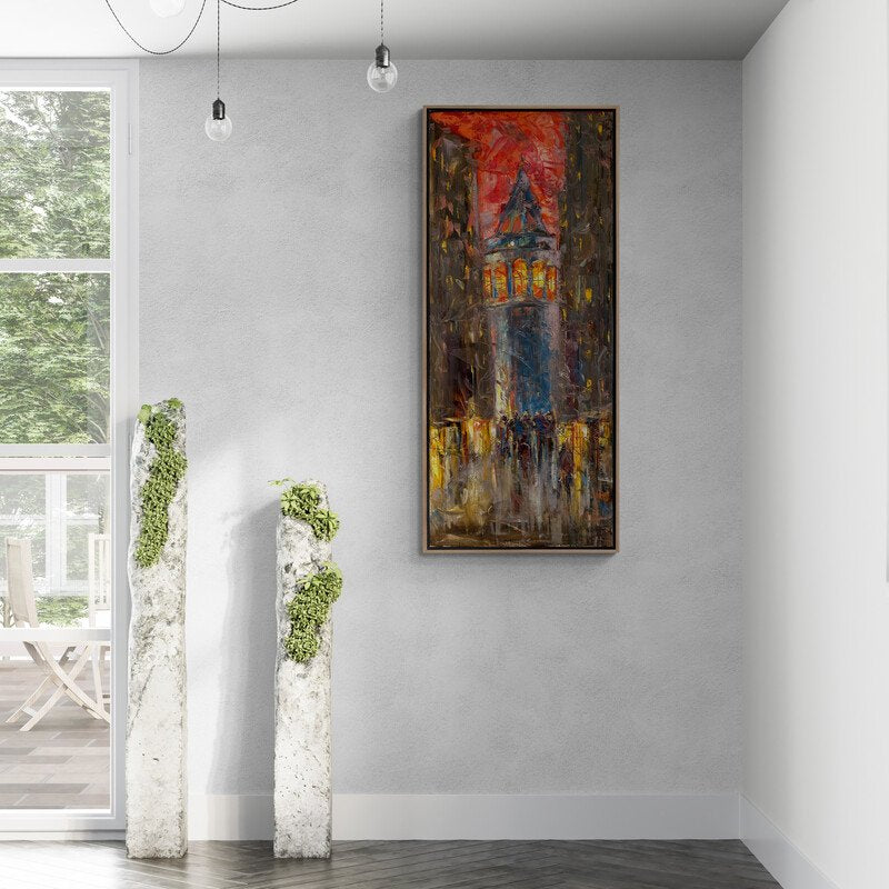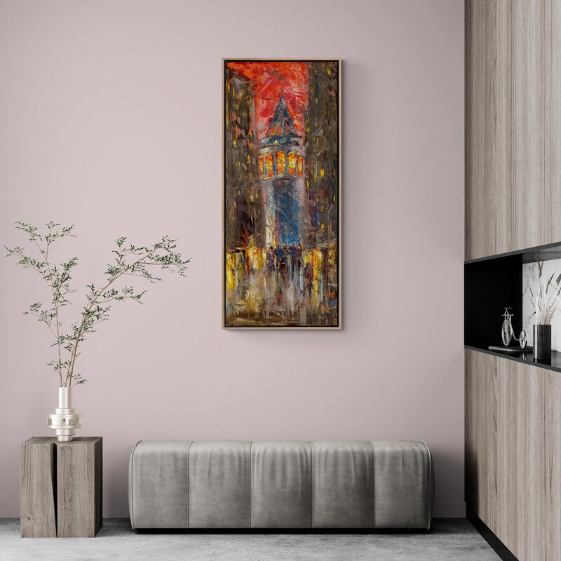 Galata'nın Gece Işıkları Yağlı Boya Tablosu