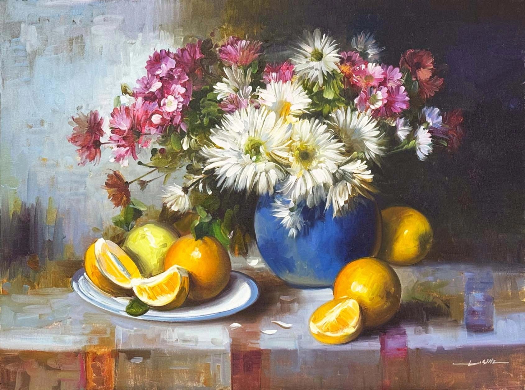 Papatyalar ve Portakal Kokusu Yağlı Boya Tablosu