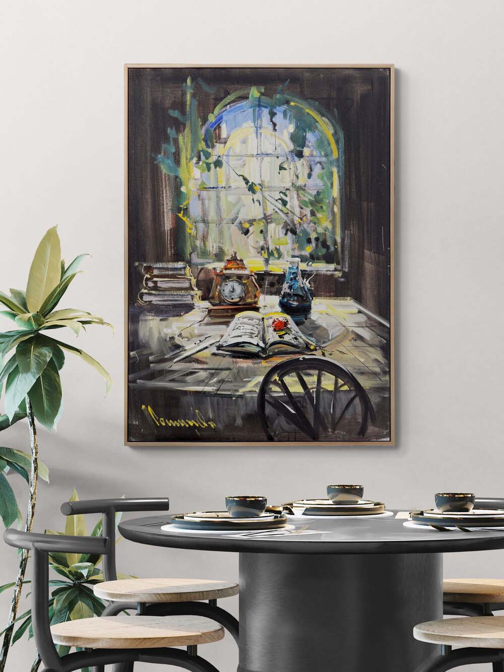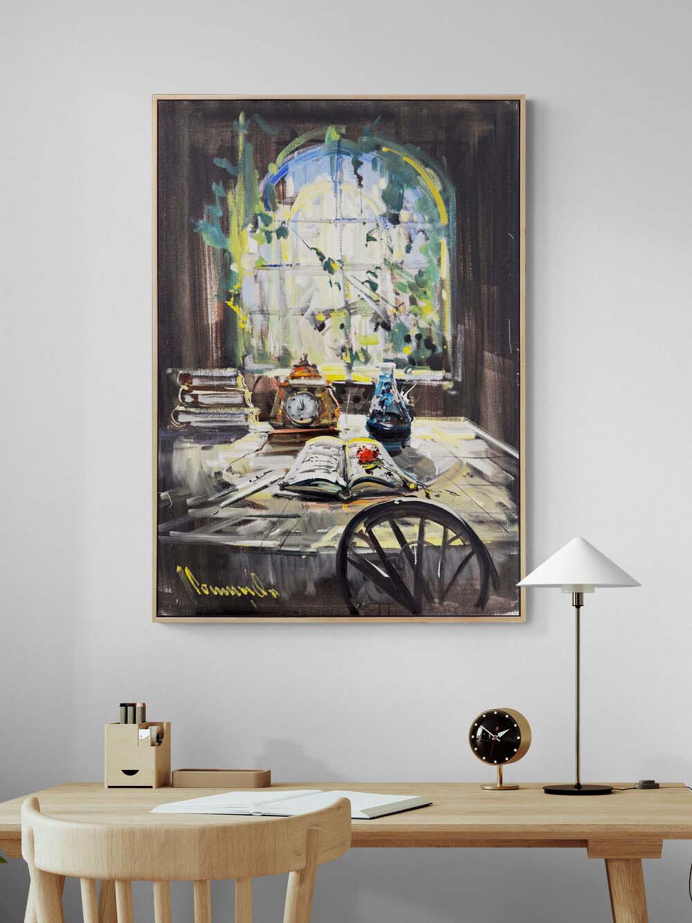 Pencerenin Önünde Düşler Yağlı Boya Tablosu
