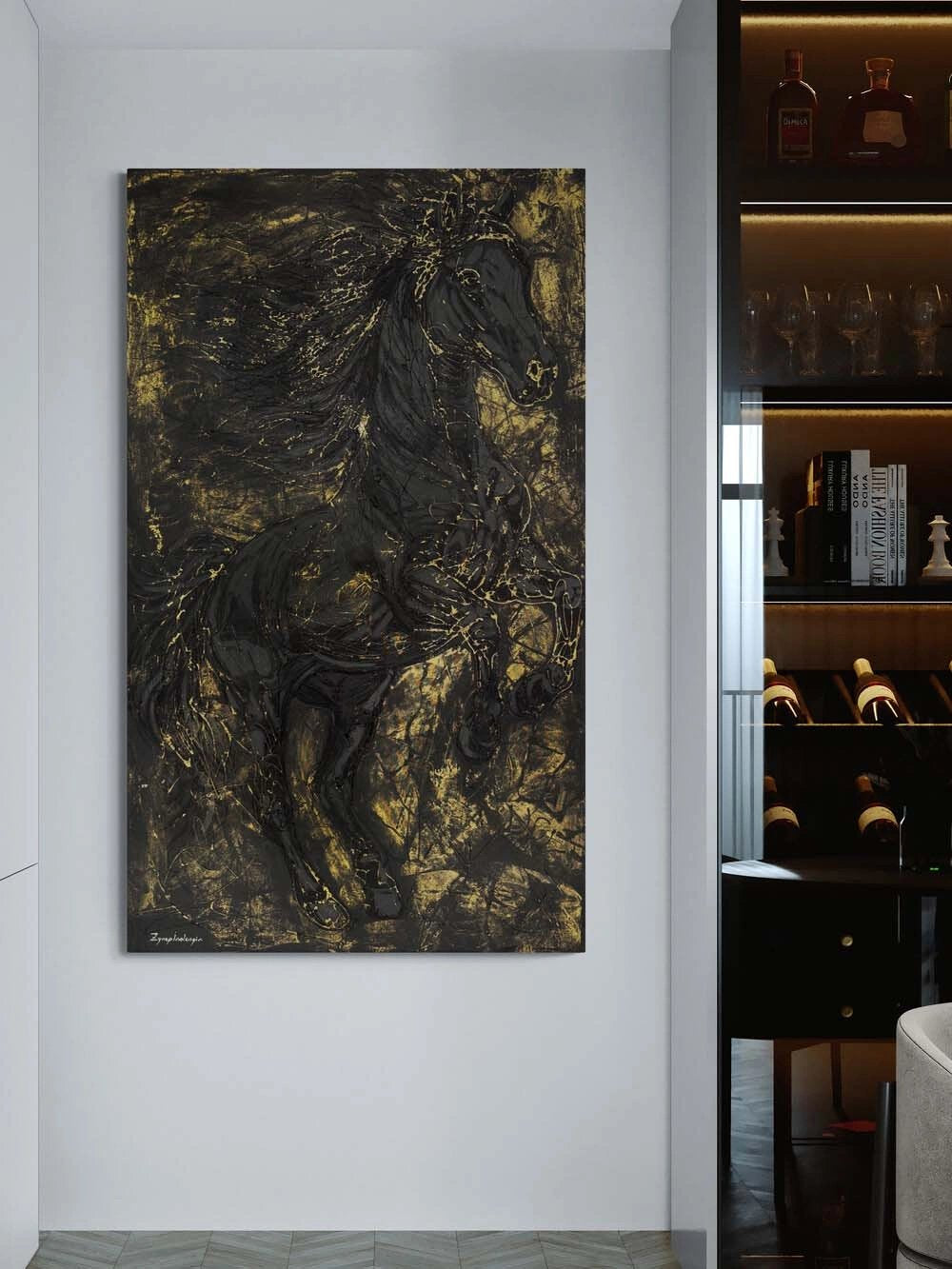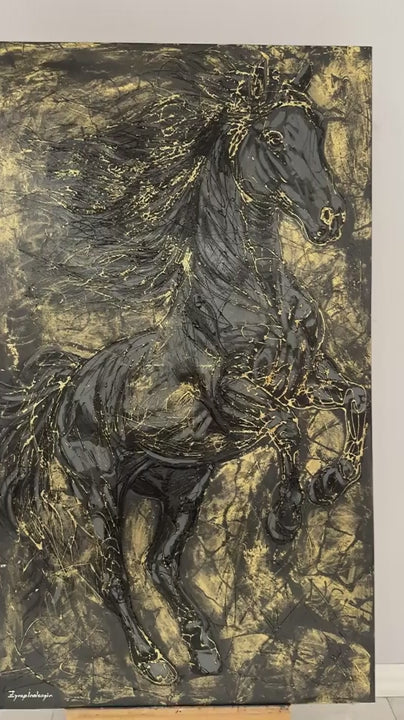 Kara Atın Kudreti Yağlı Boya Tablosu
