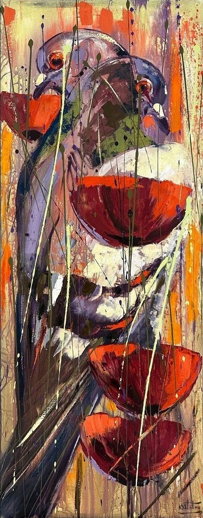 Renklerle Bezenmiş Kanatlar Yağlı Boya Tablosu