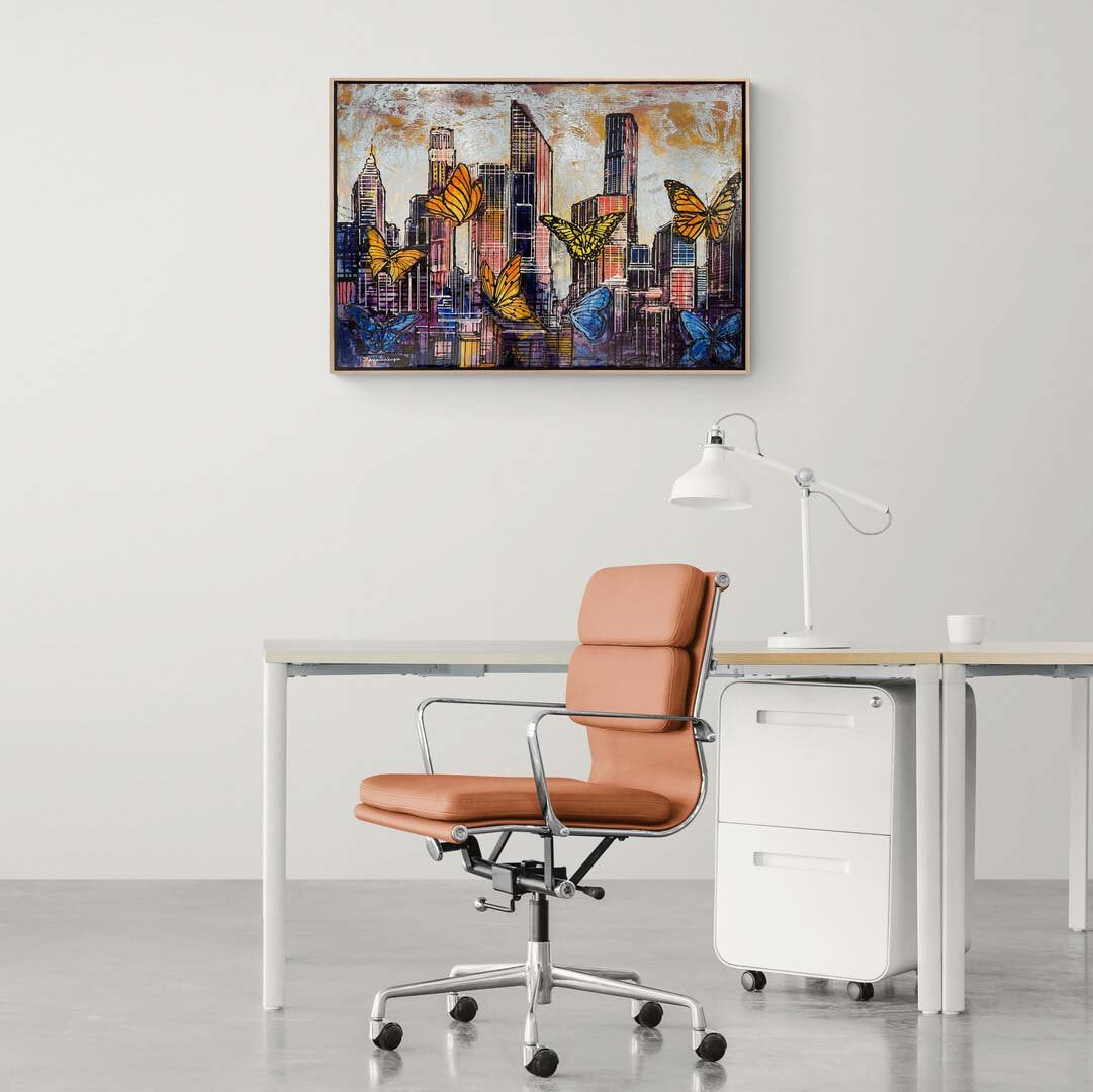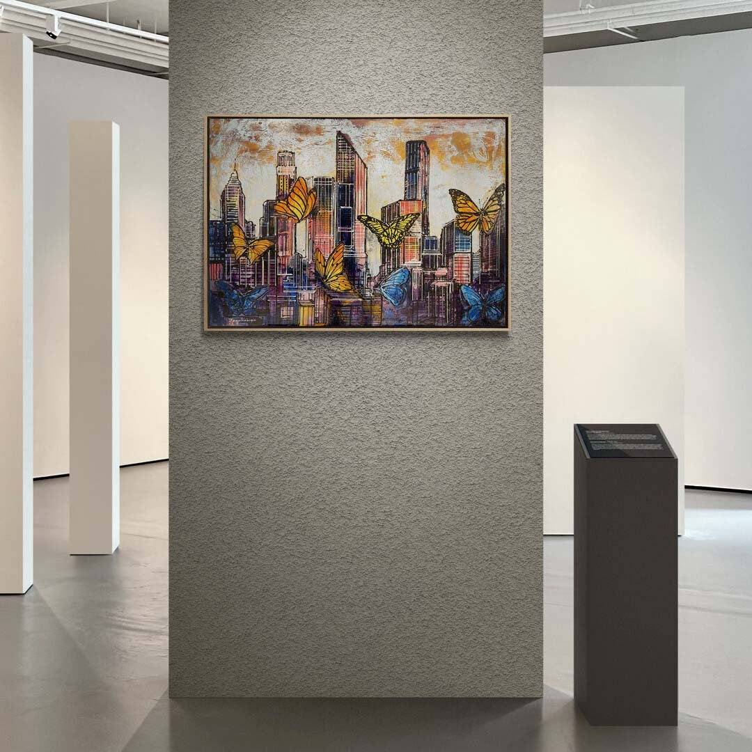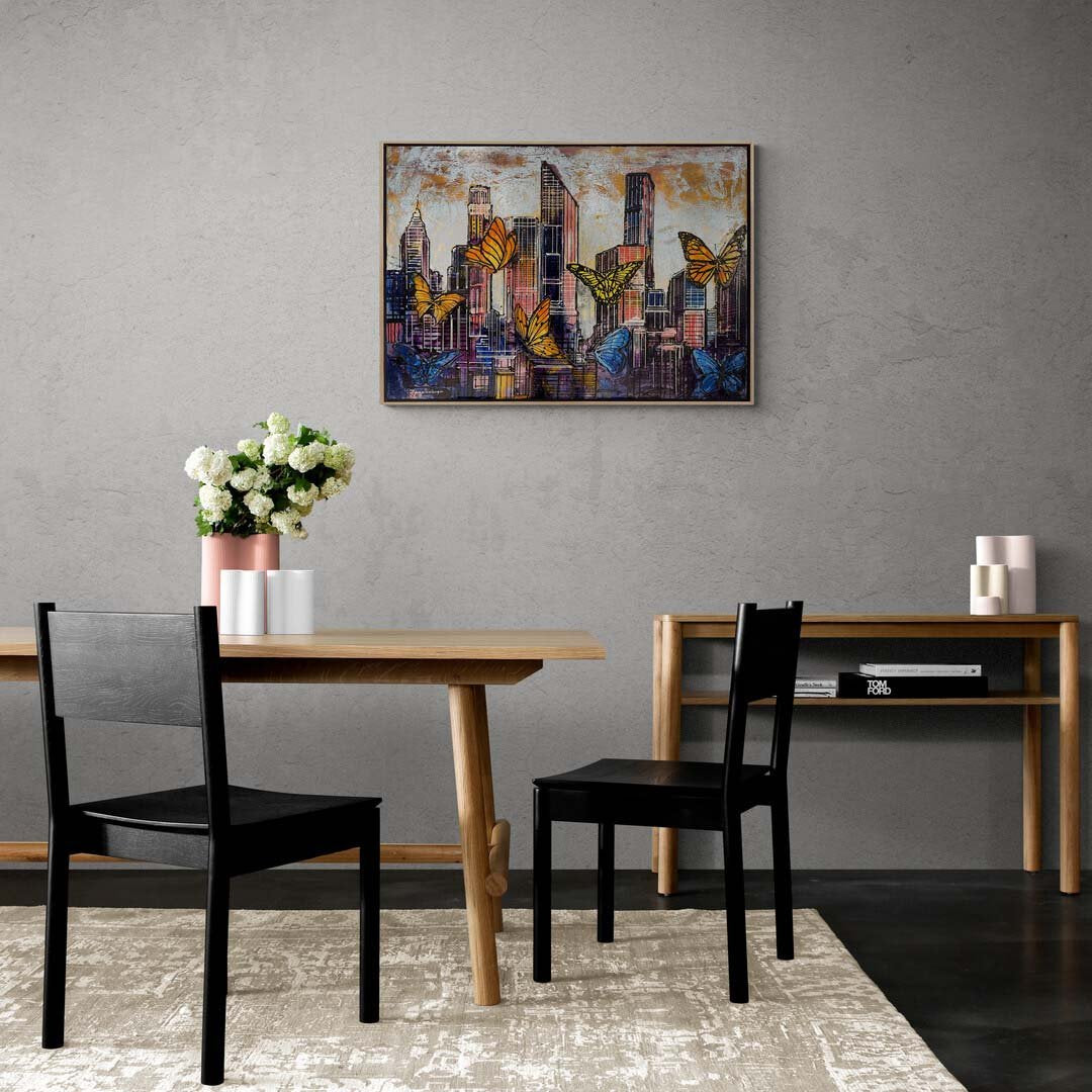 Renkli Kelebekler ve Şehir Yağlı Boya Tablosu