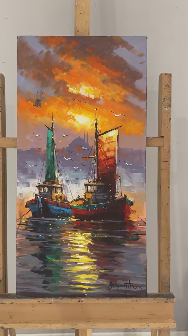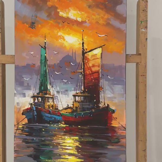 Altın Saatte Yelkenler Yağlı Boya Tablosu