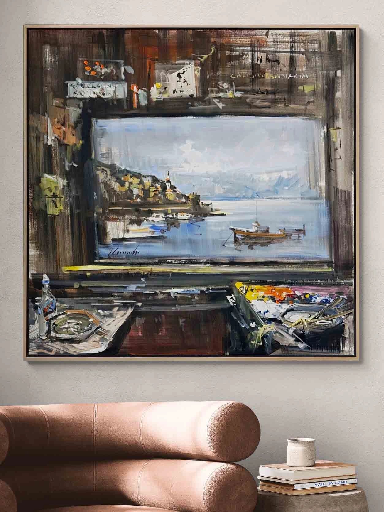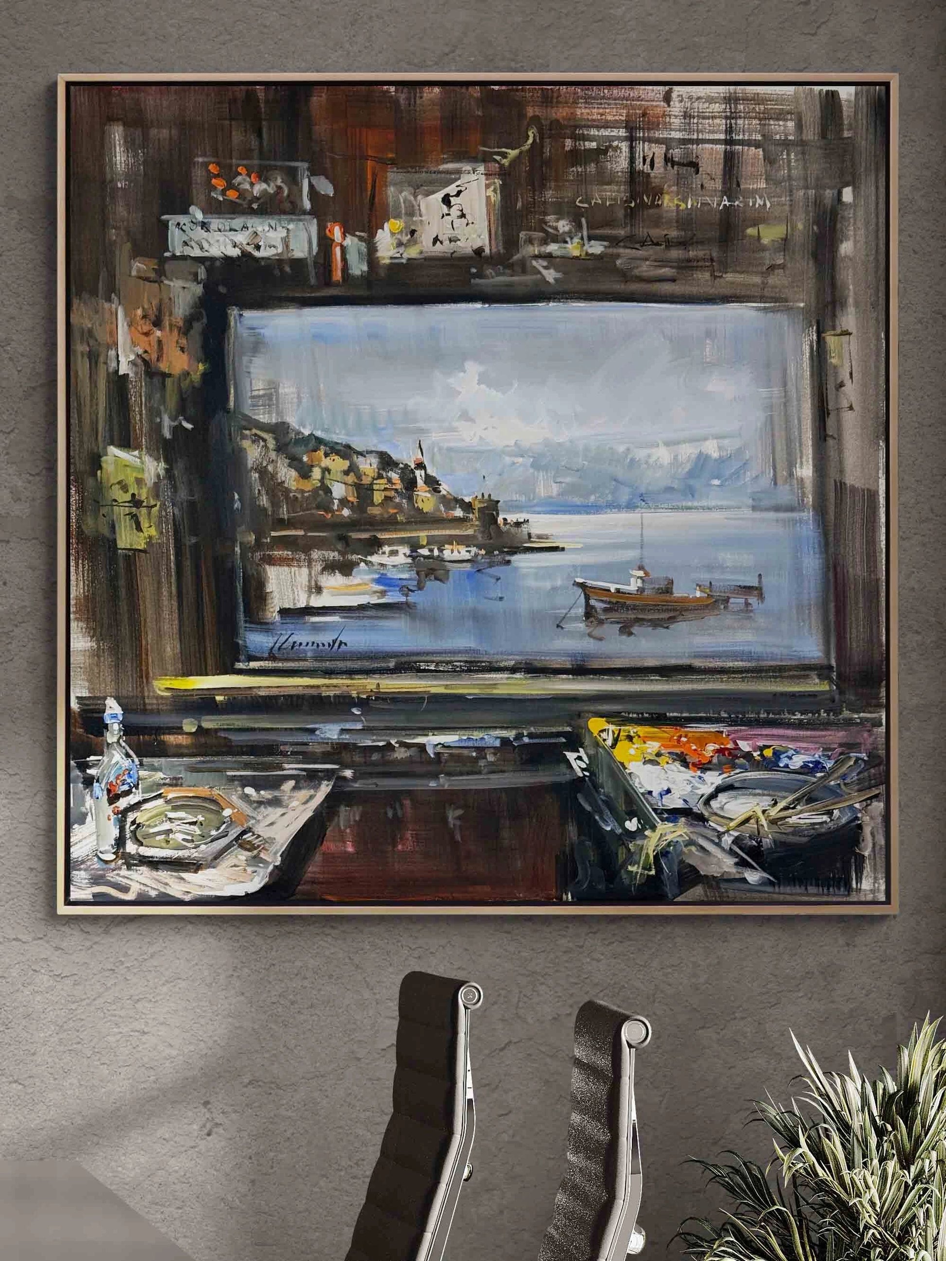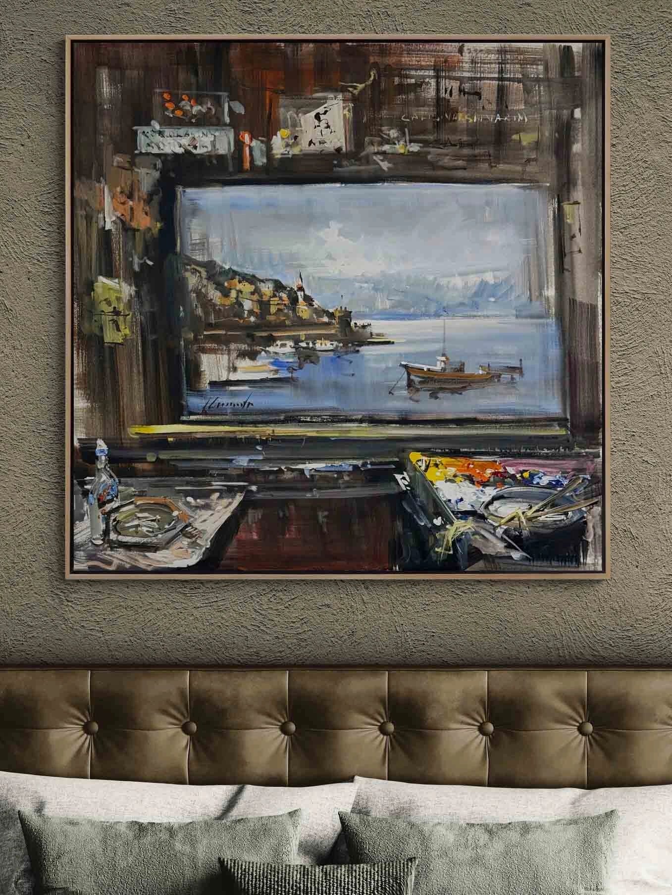 - Özel olarak üretilen 400 gr kalınlığında 1.sınıf sanatsal yağlıboya tuval üzerine çalışılır.