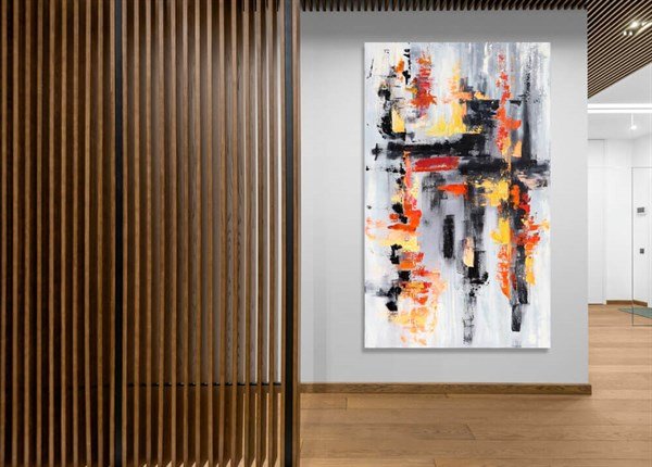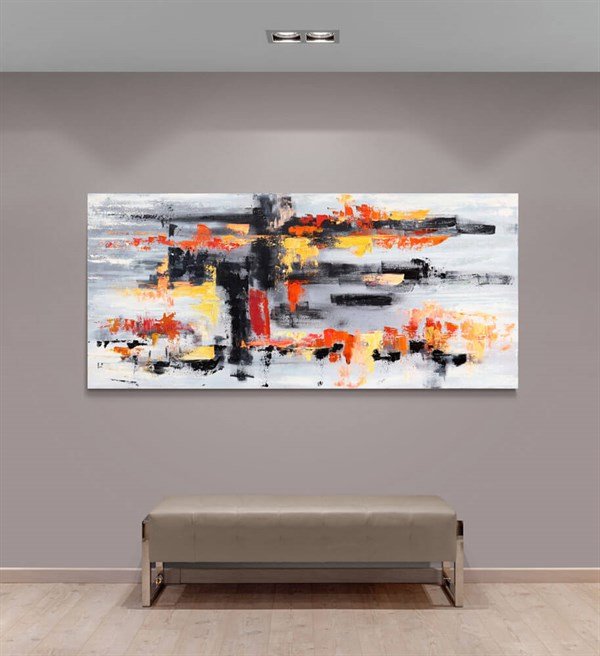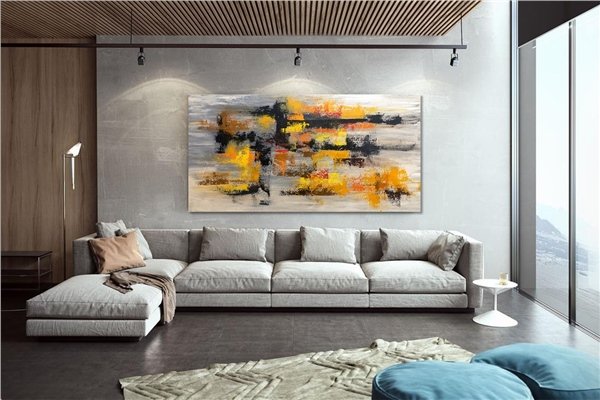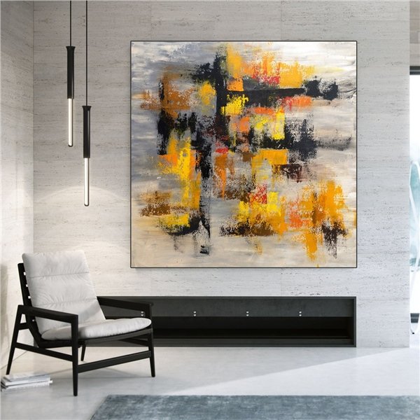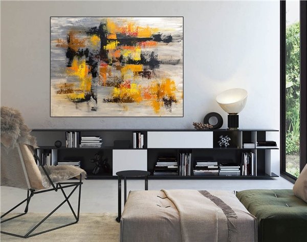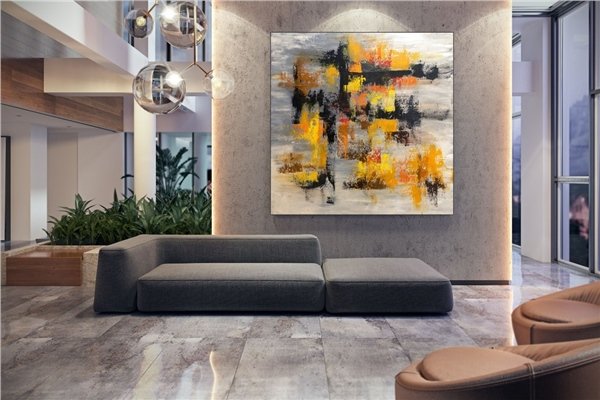 Sarı Siyah ve Turuncu Siparişe Özel Soyut Yağlı Boya Tablo