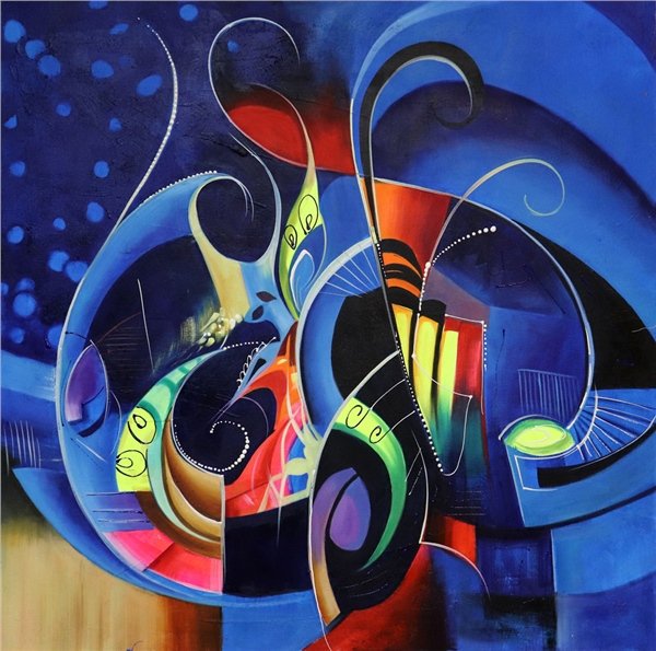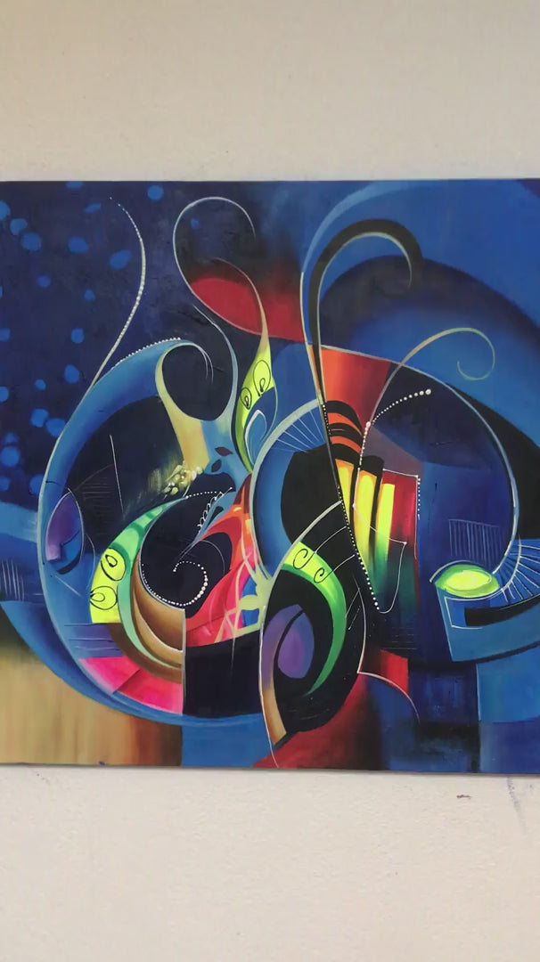 Soyut Gece Mavisi Yağlı Boya Tablosu