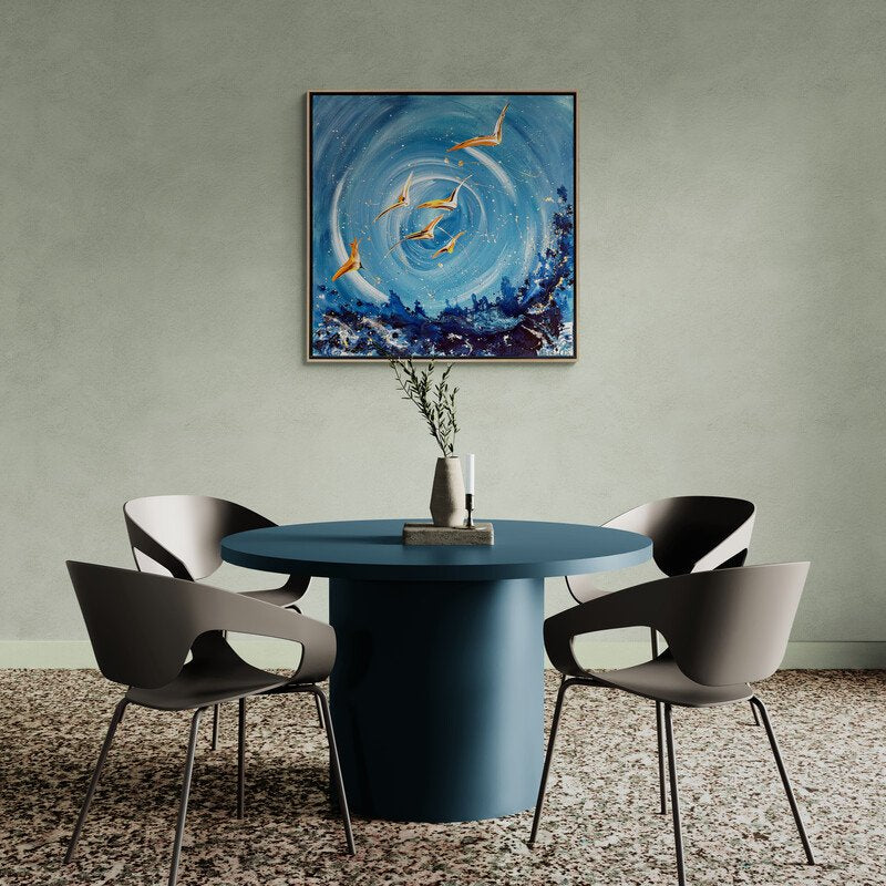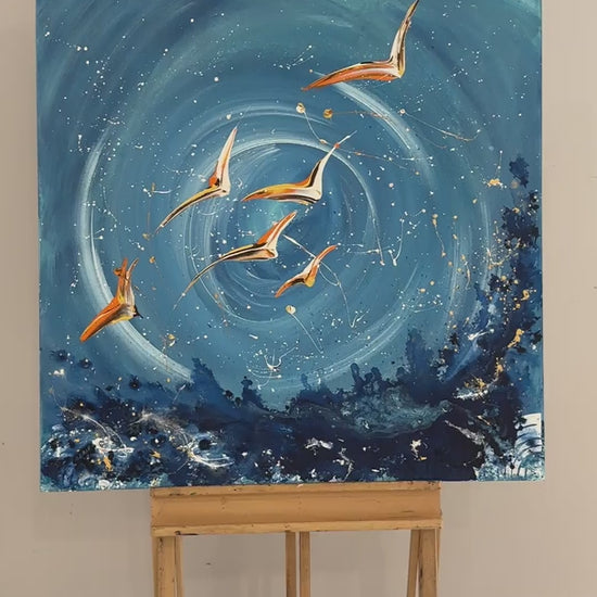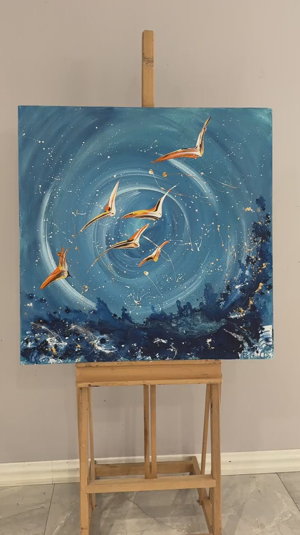 Soyut Kuş Cümbüşü Yağlı Boya Tablosu