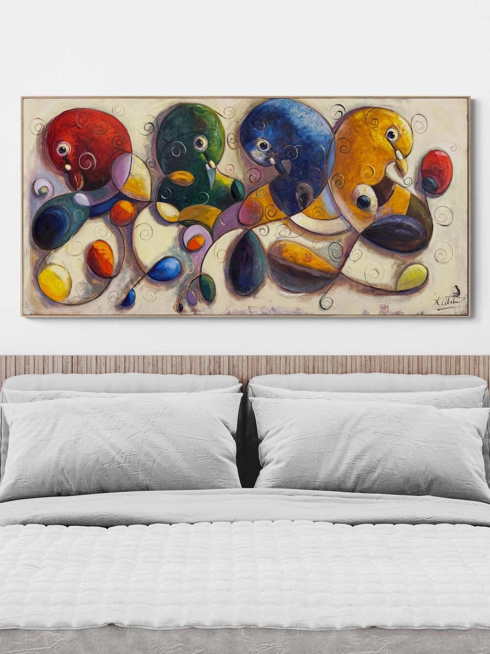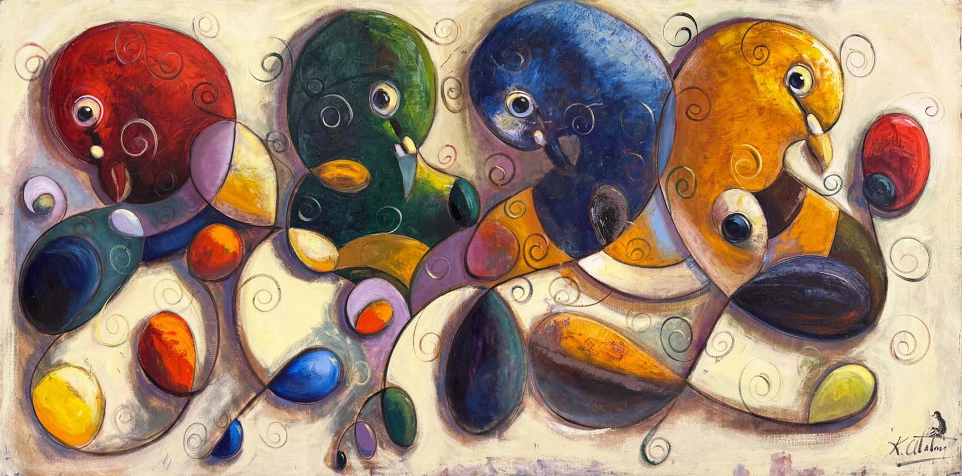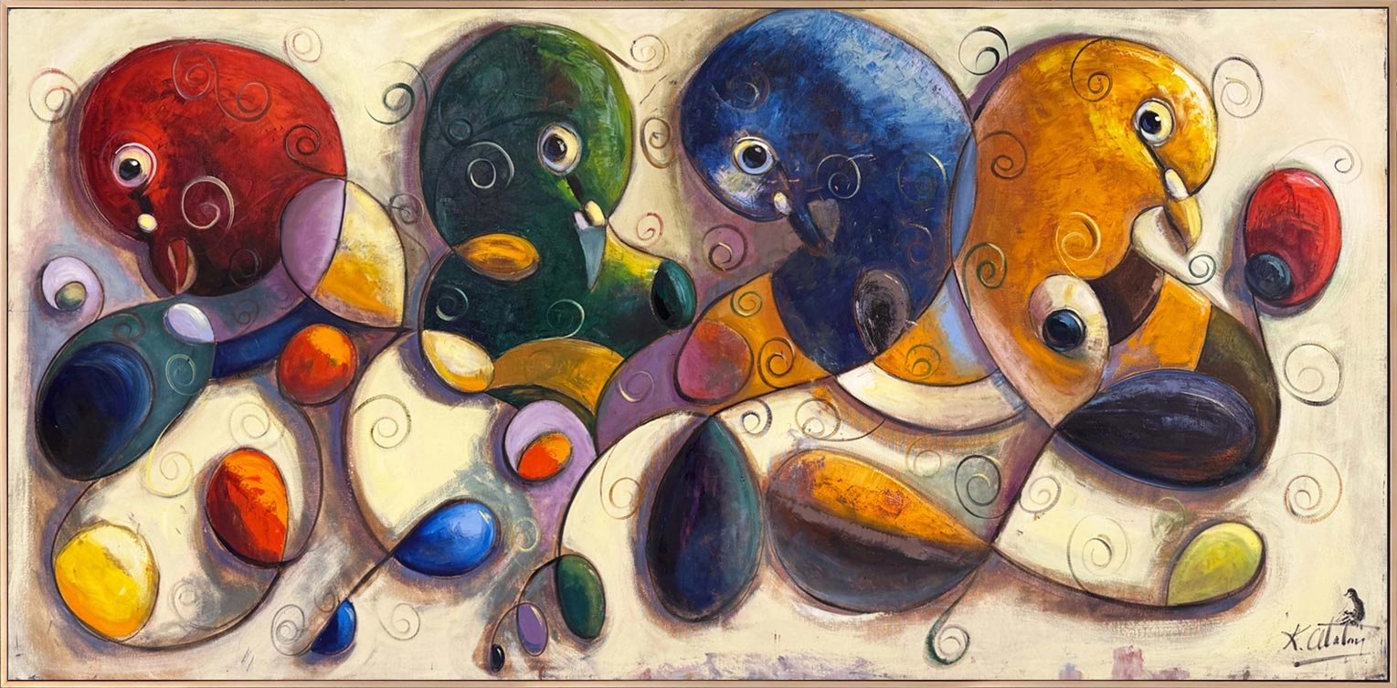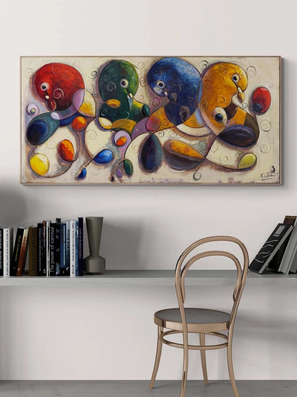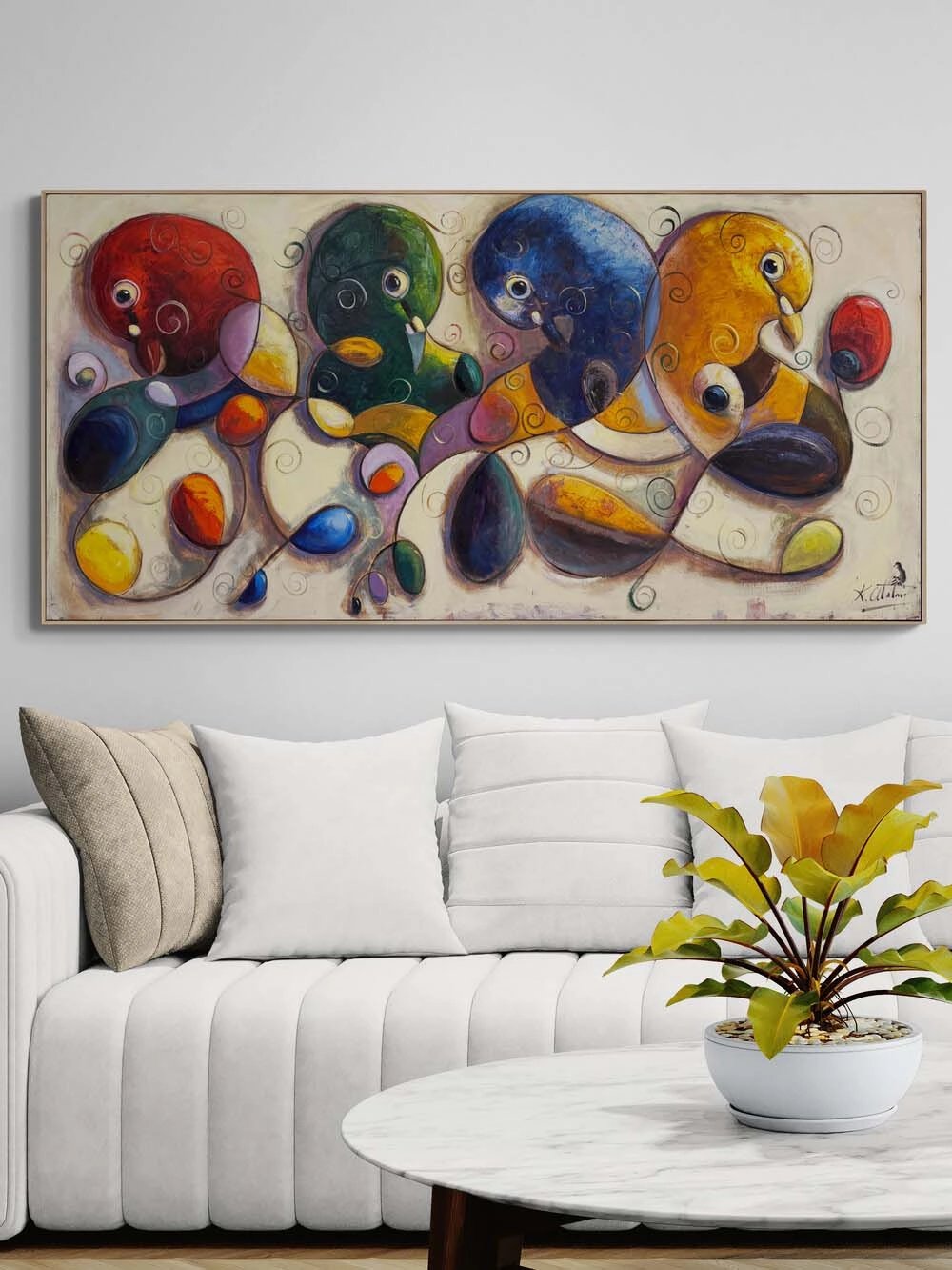 Soyut Renkli Güvercinler Yağlı Boya Tablosu