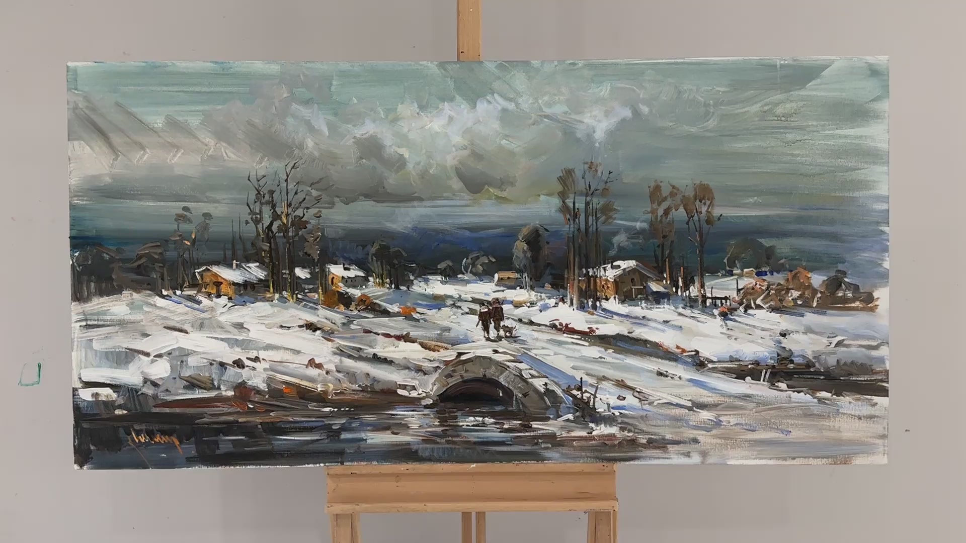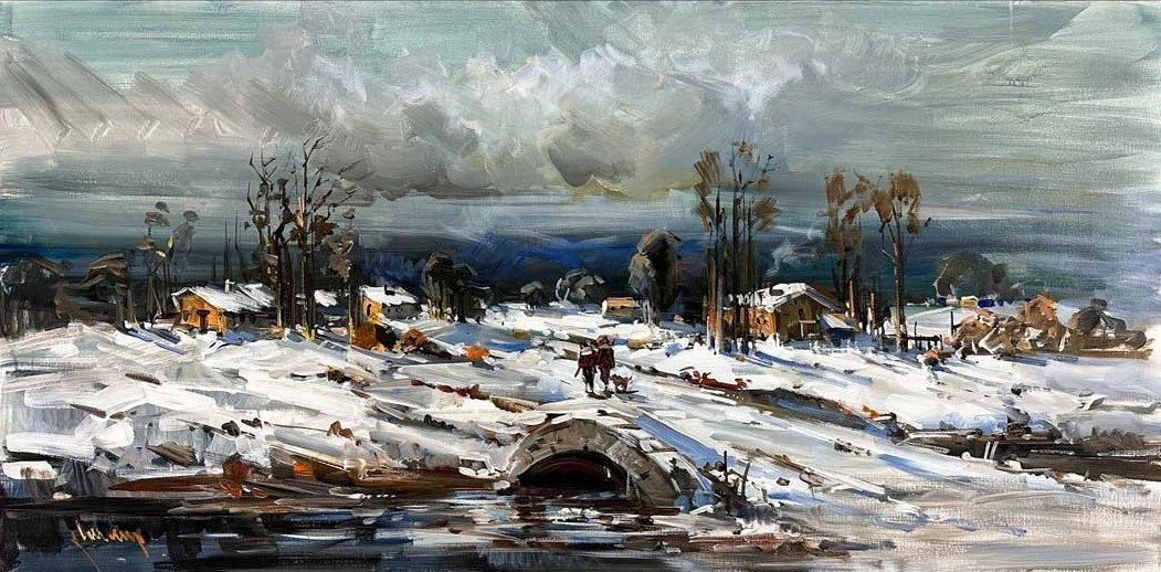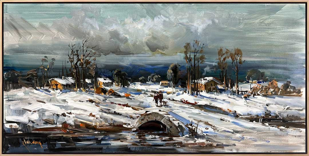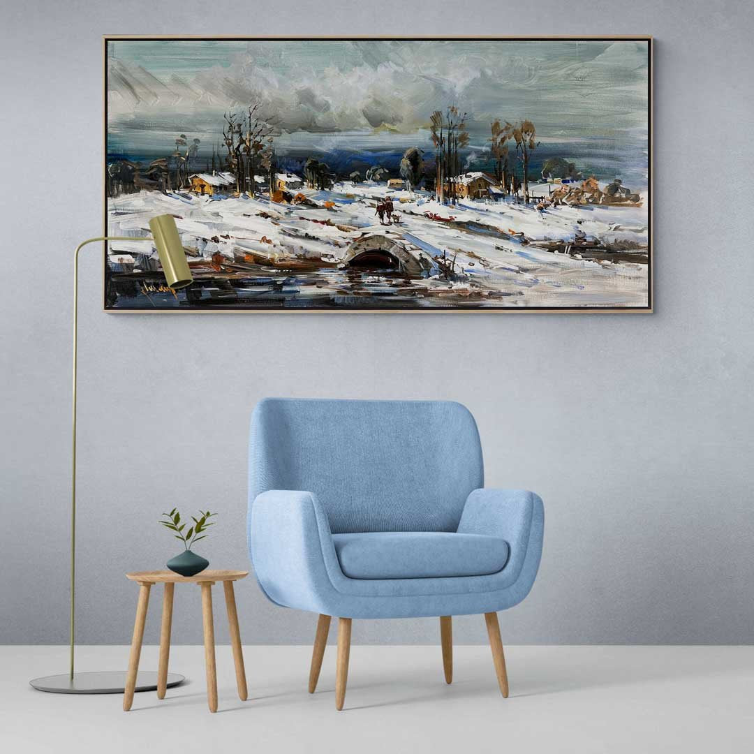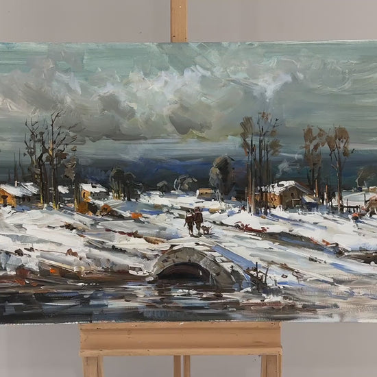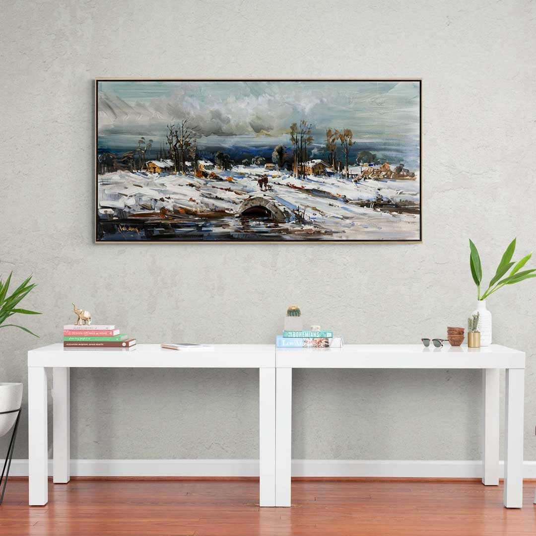 Taş Köprüden Geçerken Yağlı Boya Tablosu