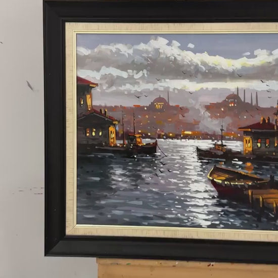 Minareler Arasında Boğaz Yağlı Boya Tablosu