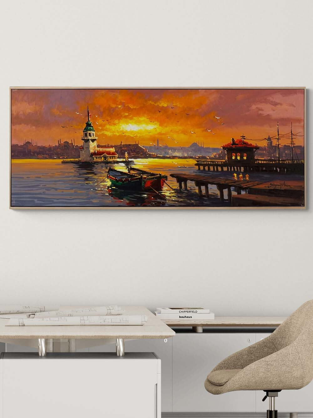 Ufka Doğru Kız Kulesi Yağlı Boya Tablosu