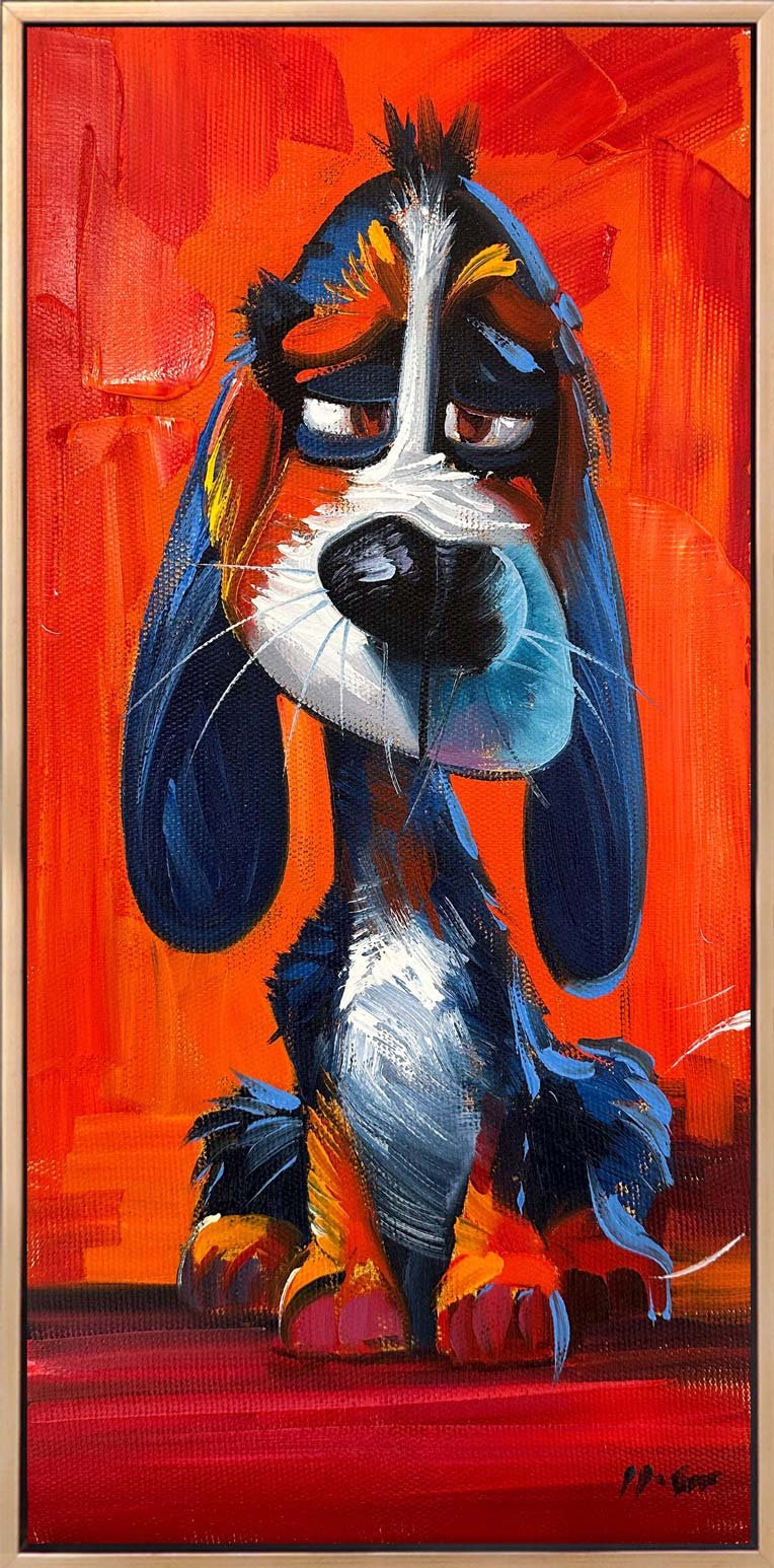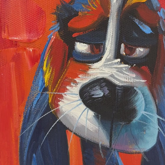Uykulu Köpek Bakışları Yağlı Boya Tablosu