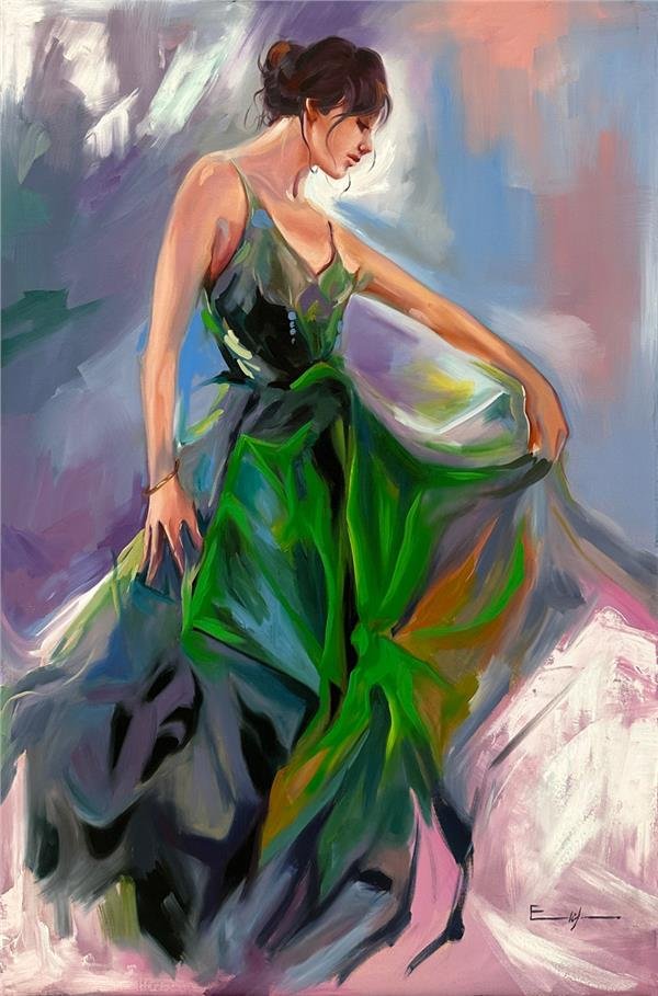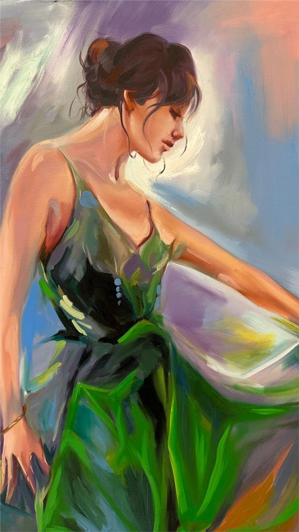 Yeşilli Kadın Yağlı Boya Tablosu