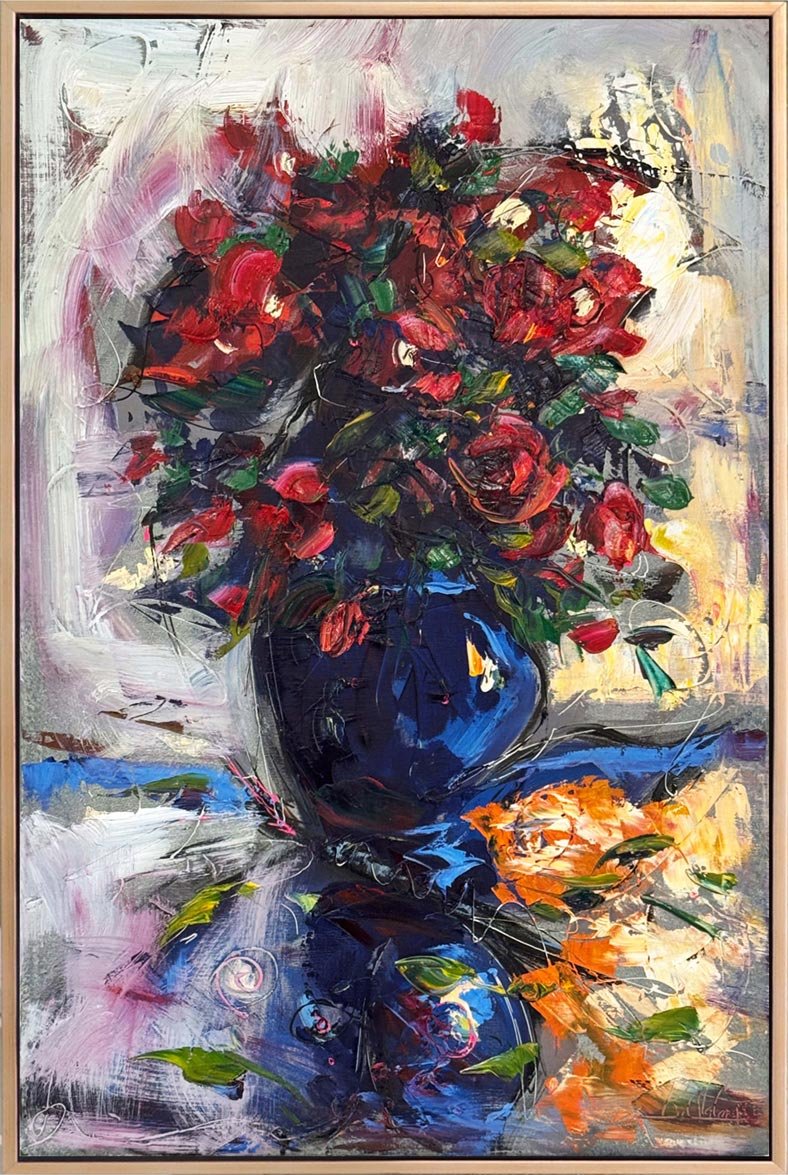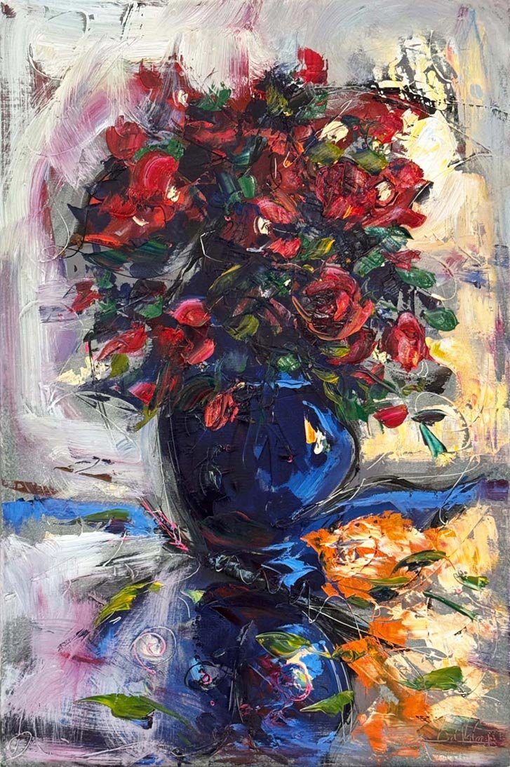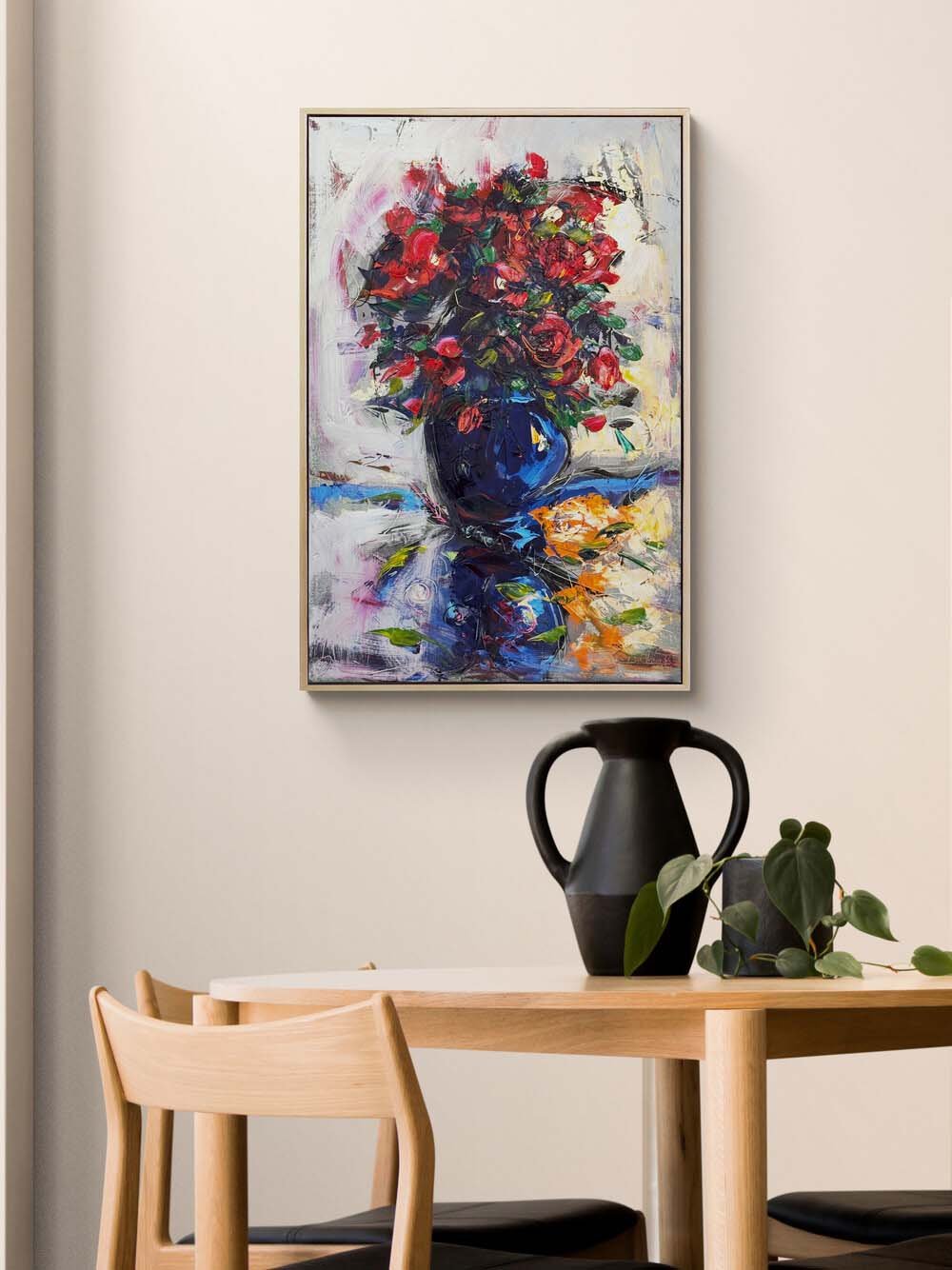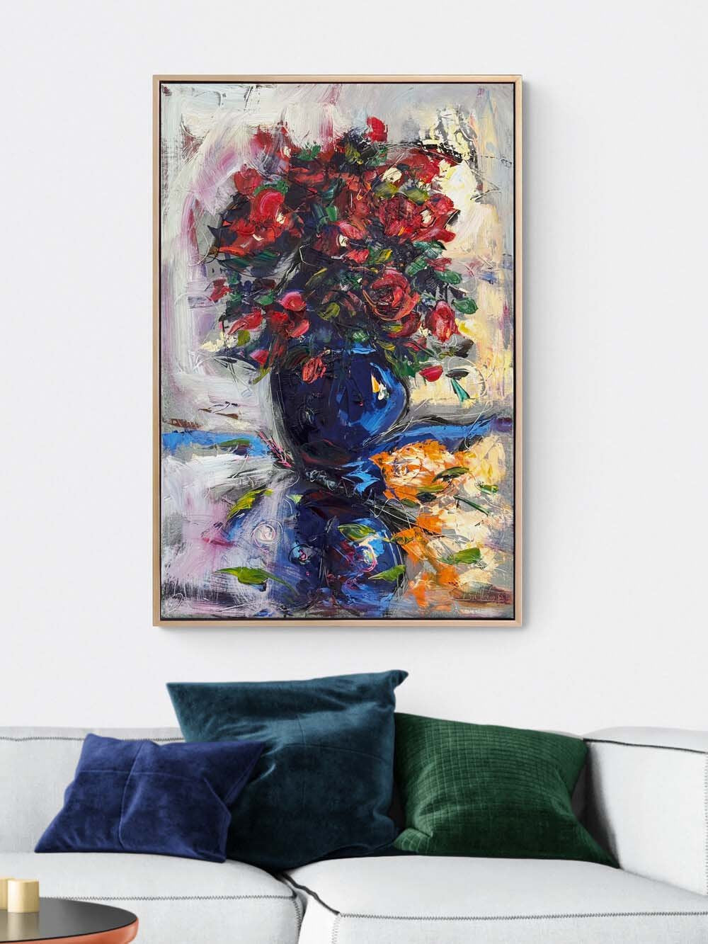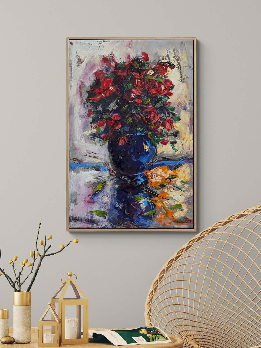 Yansıyan Kırmızı Çiçekler Yağlı Boya Tablosu