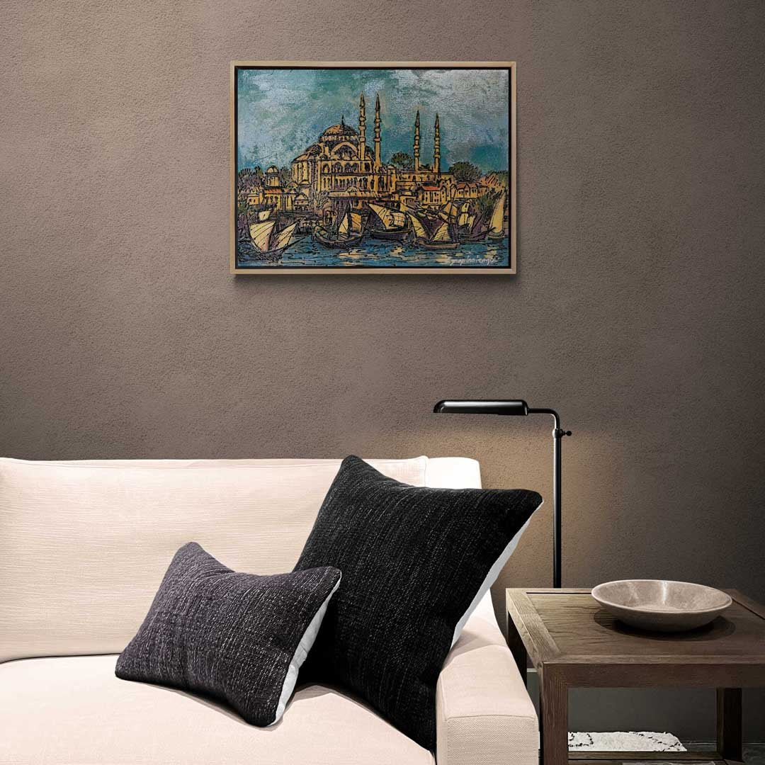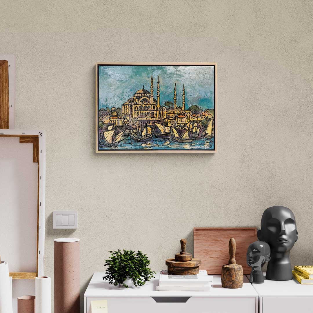 Yeni Cami ve Yelkeniler Yağlı Boya Tablosu