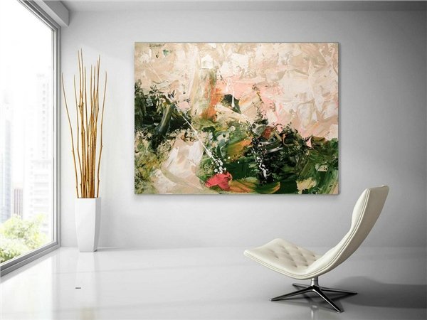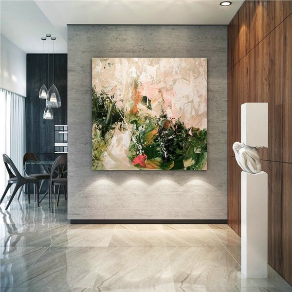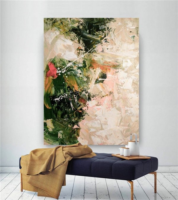 Yeşil ve Krem Siparişe Özel Soyut Yağlı Boya Tablo
