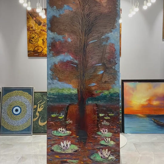 - Özel olarak üretilen 400 gr kalınlığında 1.sınıf sanatsal yağlıboya tuval üzerine çalışılır.