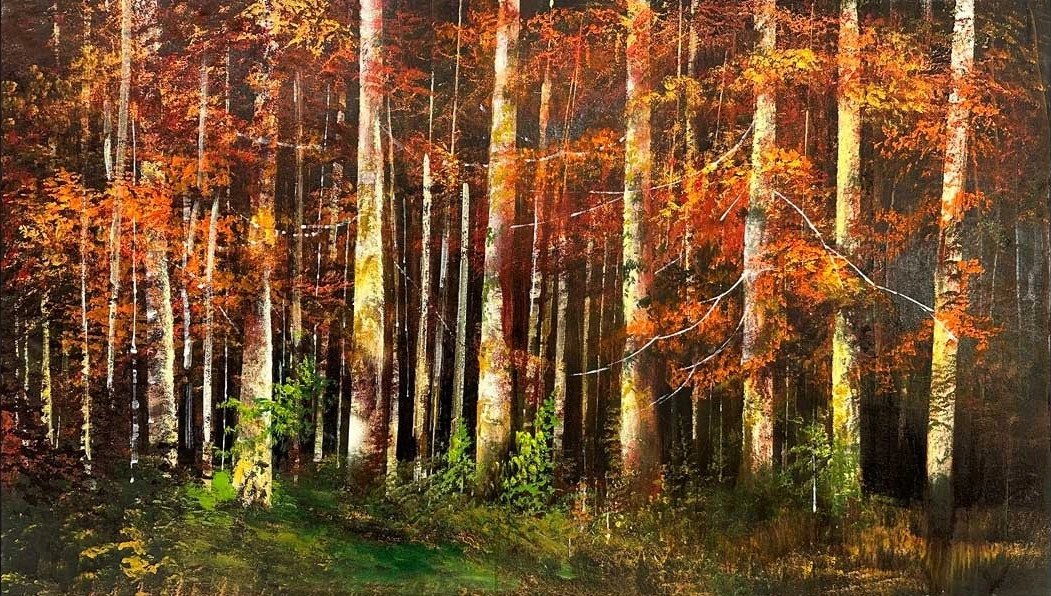 Ağaçların Sarı Şiiri Yağlı Boya Tablosu