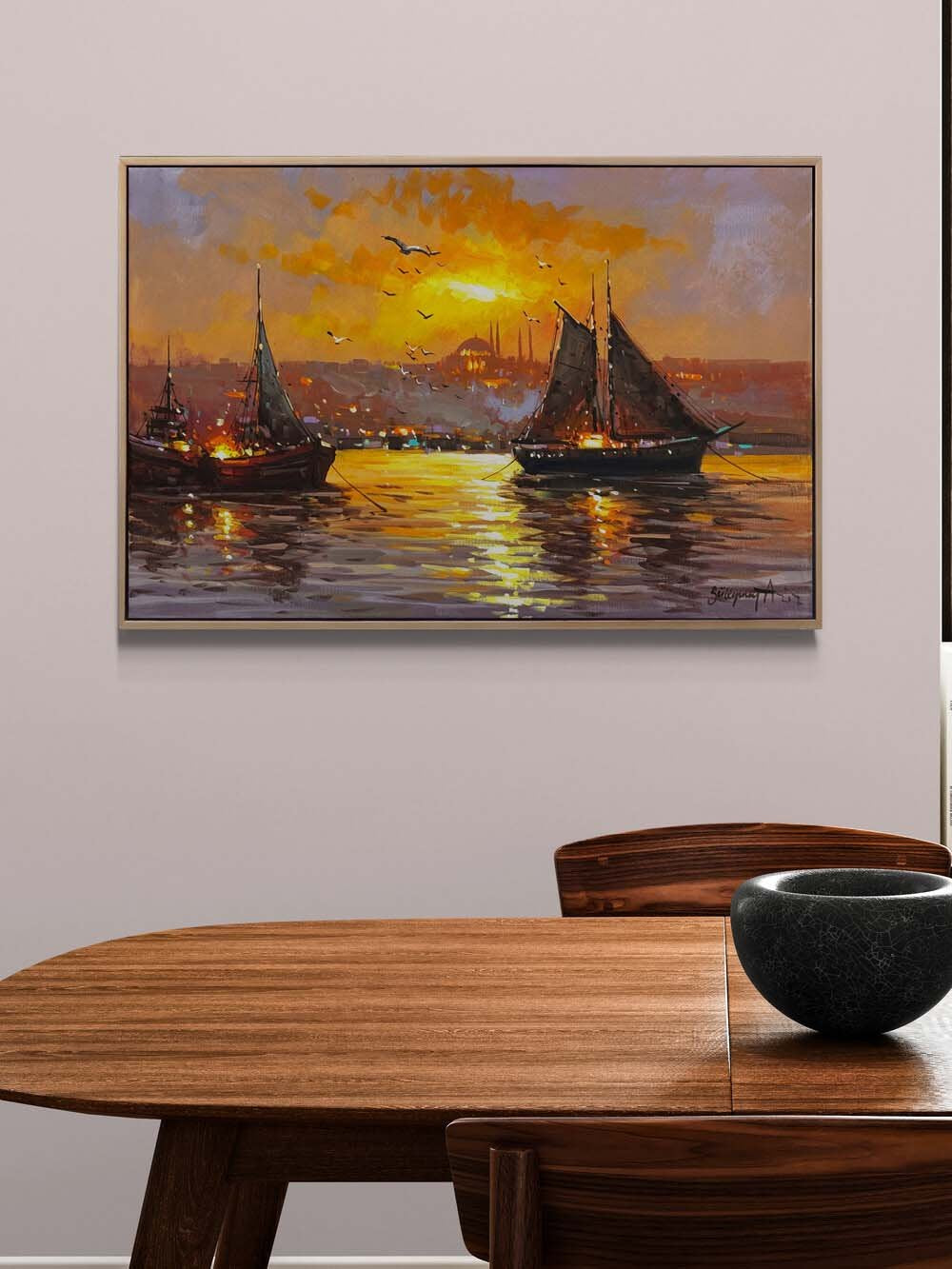 - Özel olarak üretilen 400 gr kalınlığında 1.sınıf sanatsal yağlıboya tuval üzerine çalışılır.