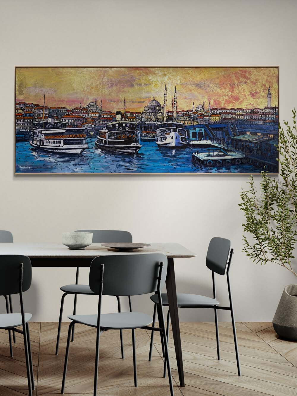 Altın İstanbul Akşamı Yağlı Boya Tablosu