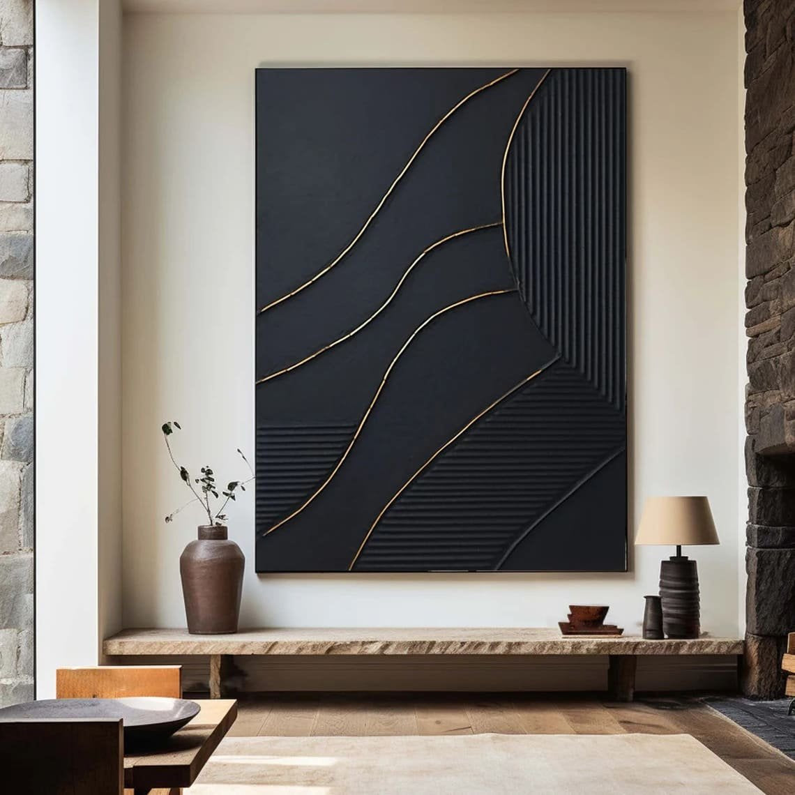 Altın ve Siyah Soyut Siparişe Özel Yağlı Boya Tablo