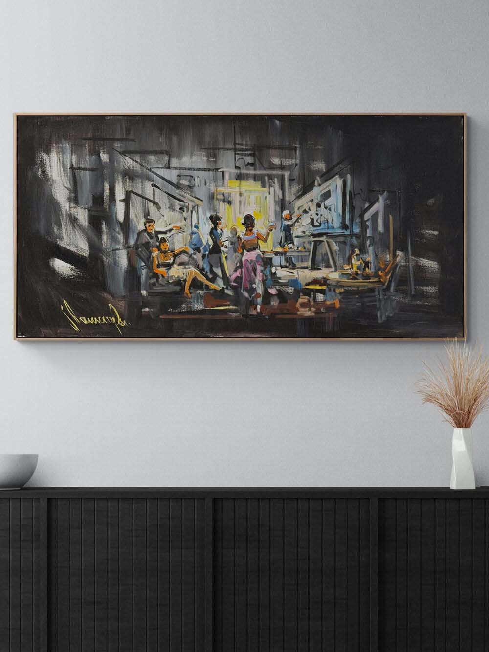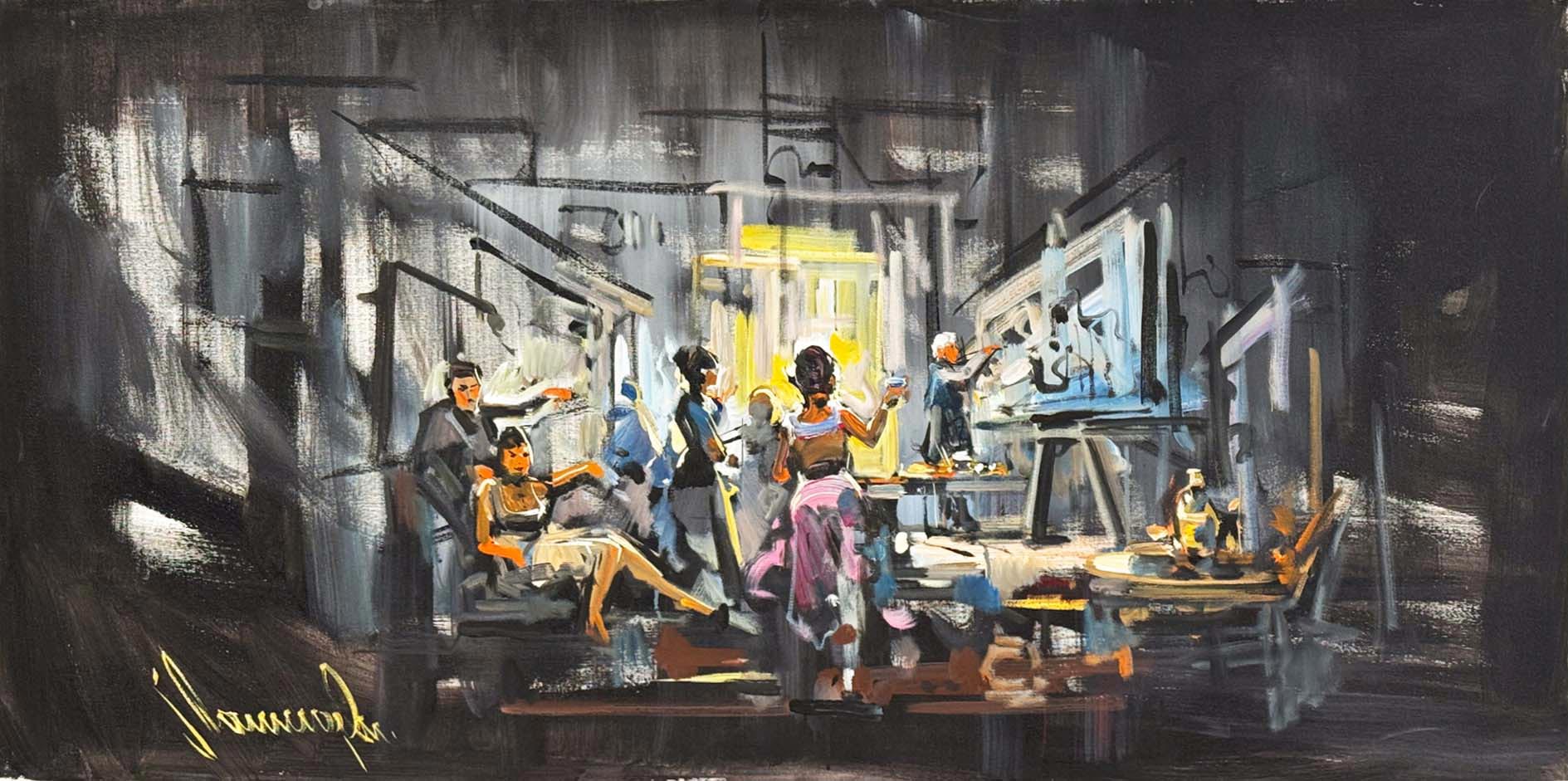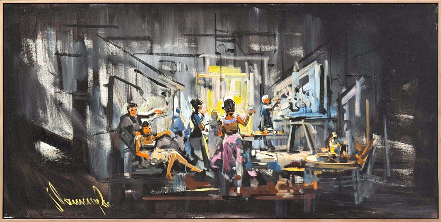 Atölyede Gece Yarısı Yağlı Boya Tablosu