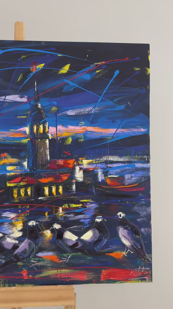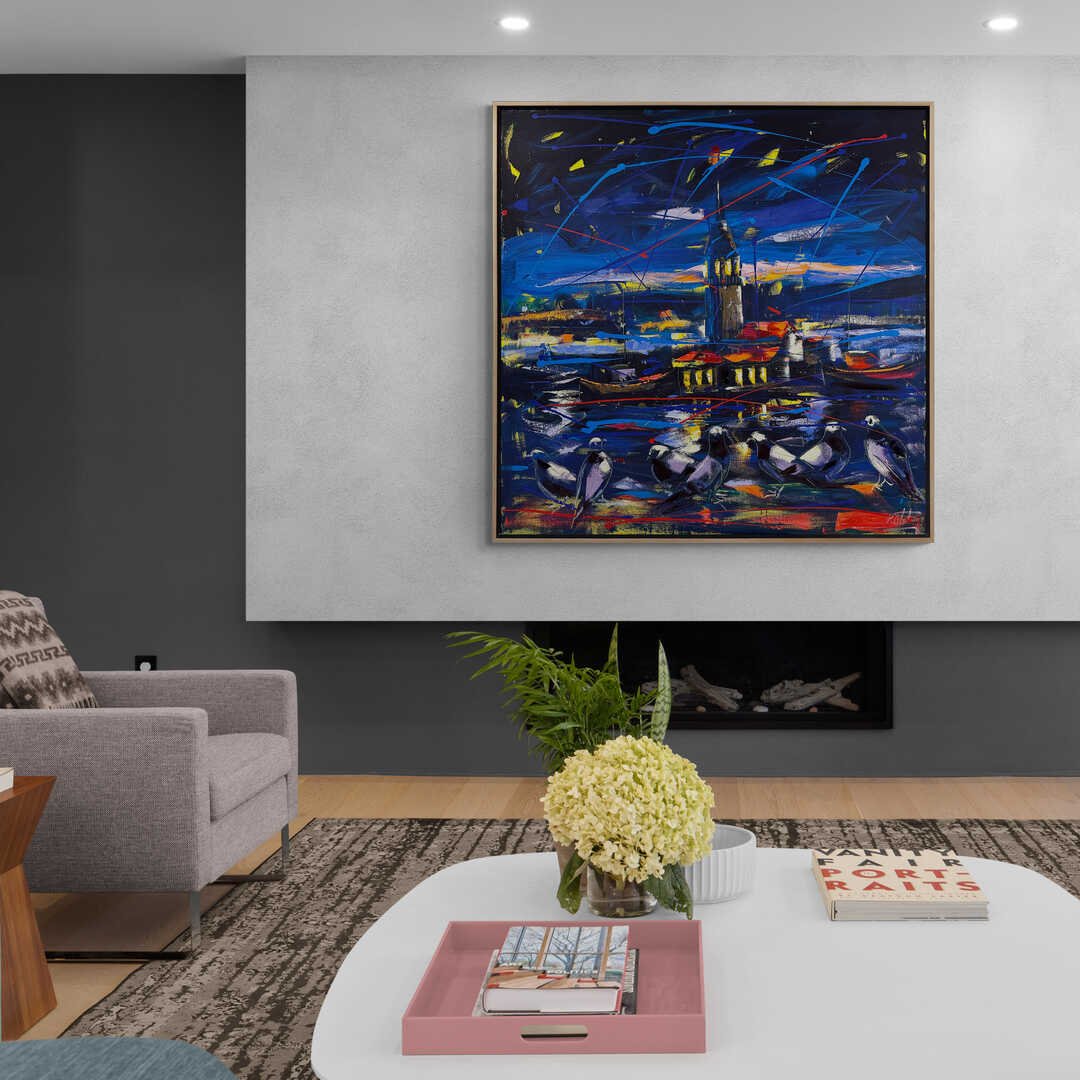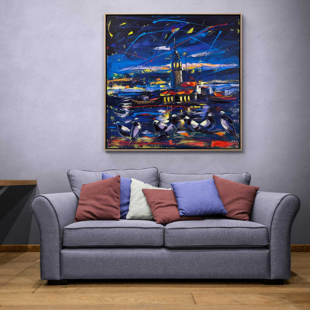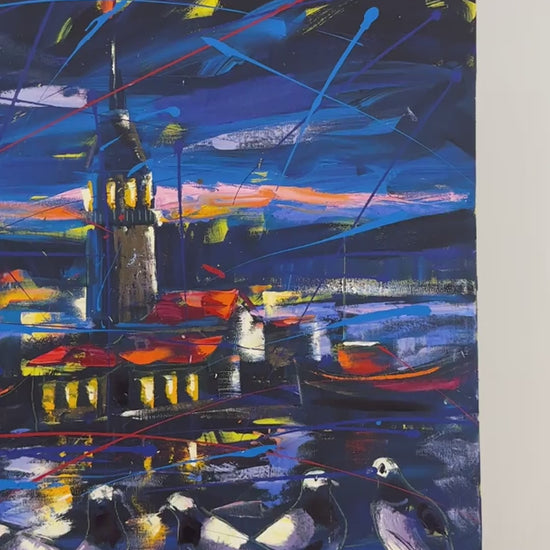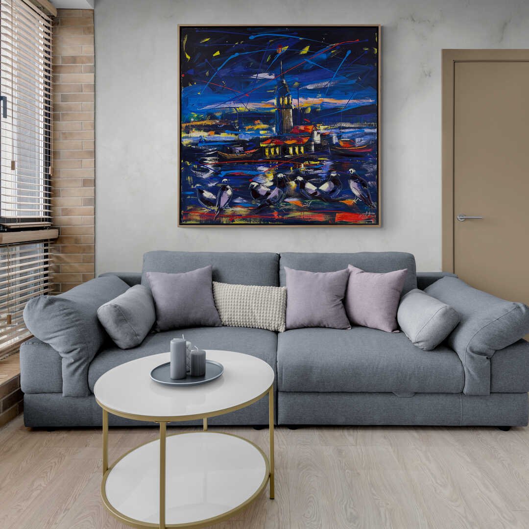 Ay Işığında Kız Kulesi Yağlı Boya Tablosu