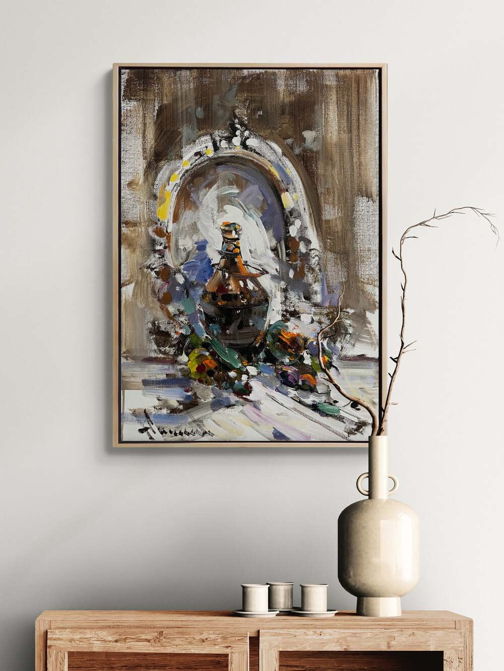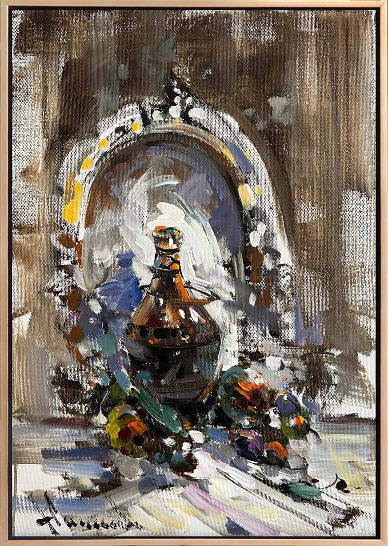 - Özel olarak üretilen 400 gr kalınlığında 1.sınıf sanatsal yağlıboya tuval üzerine çalışılır.