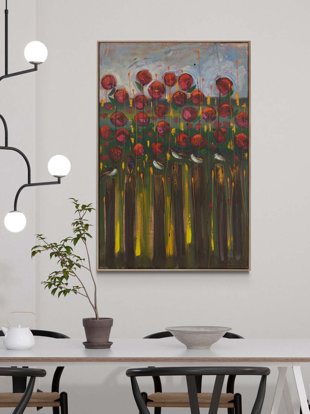 Bahçede Kırlangıçlar Yağlı Boya Tablosu