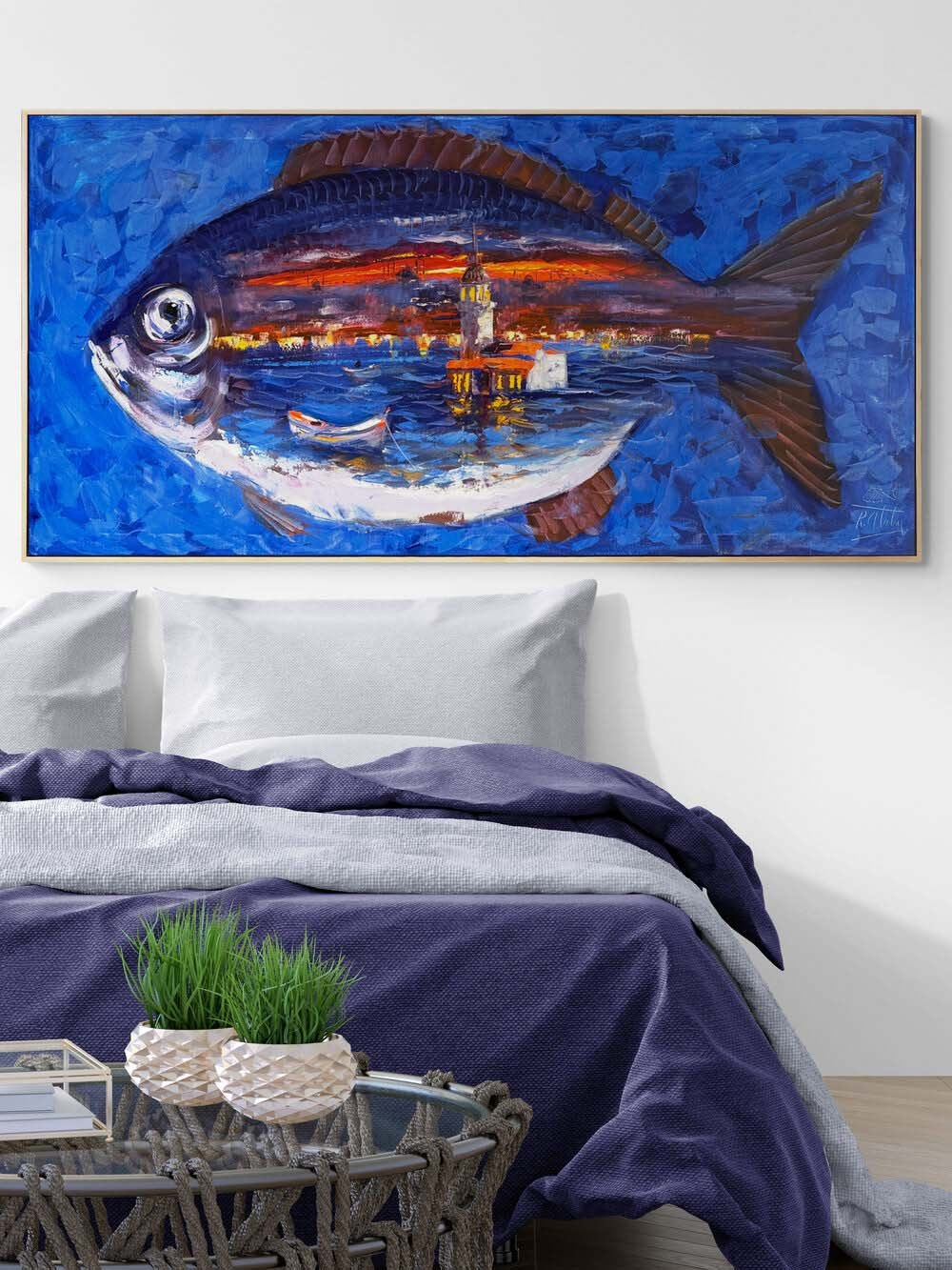 Balığın Kalbinde Kule Yağlı Boya Tablosu