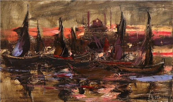 Günbatımında Kayık Esintisi Yağlı Boya Tablosu