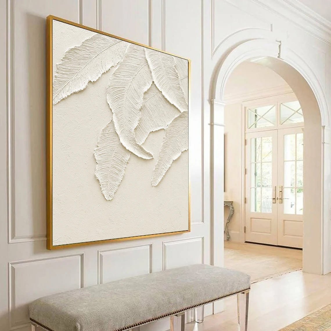 Bej Fonlu Yaprak Desenli Siparişe Özel Soyut Yağlı Boya Tablo