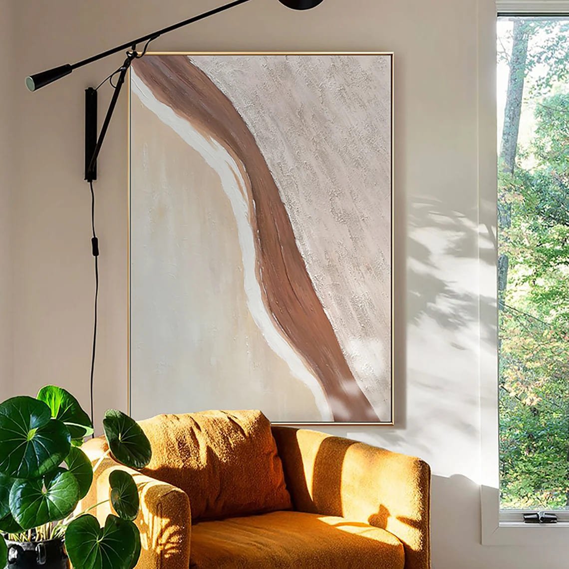 Bej ve Kahverengi Siparişe Özel Soyut Yağlı Boya Tablo