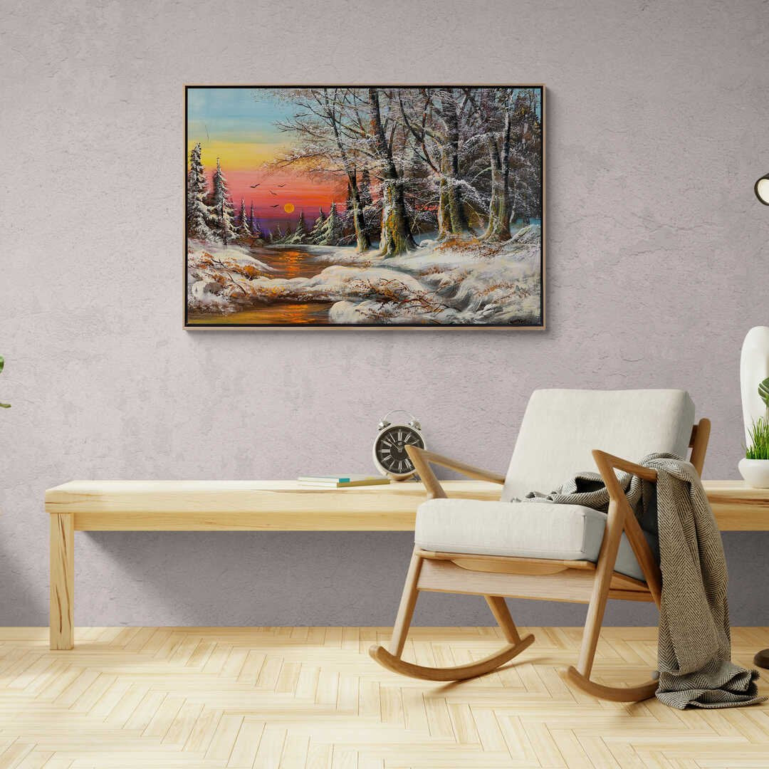 Bembeyaz Kar Manzarası Yağlı Boya Tablosu