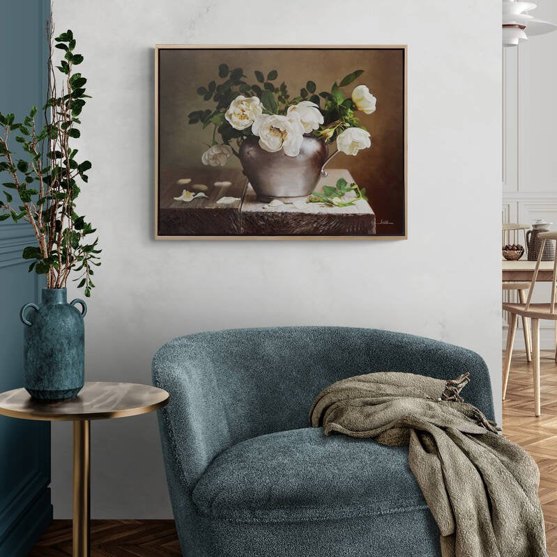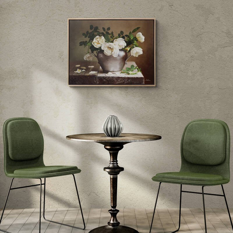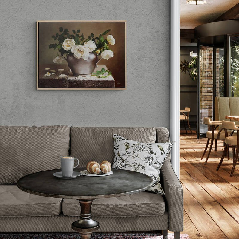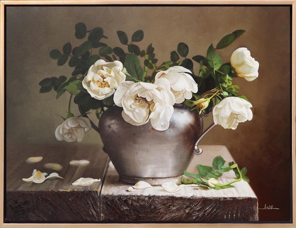 Beyaz Güllerin Melodisi Siparişe Özel Yağlı Boya Tablo