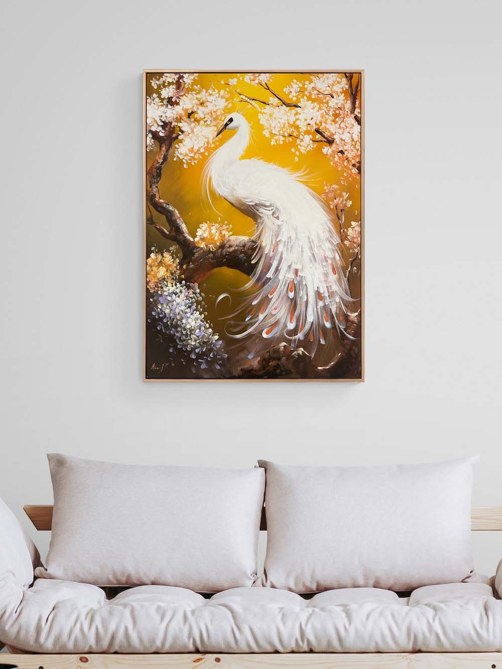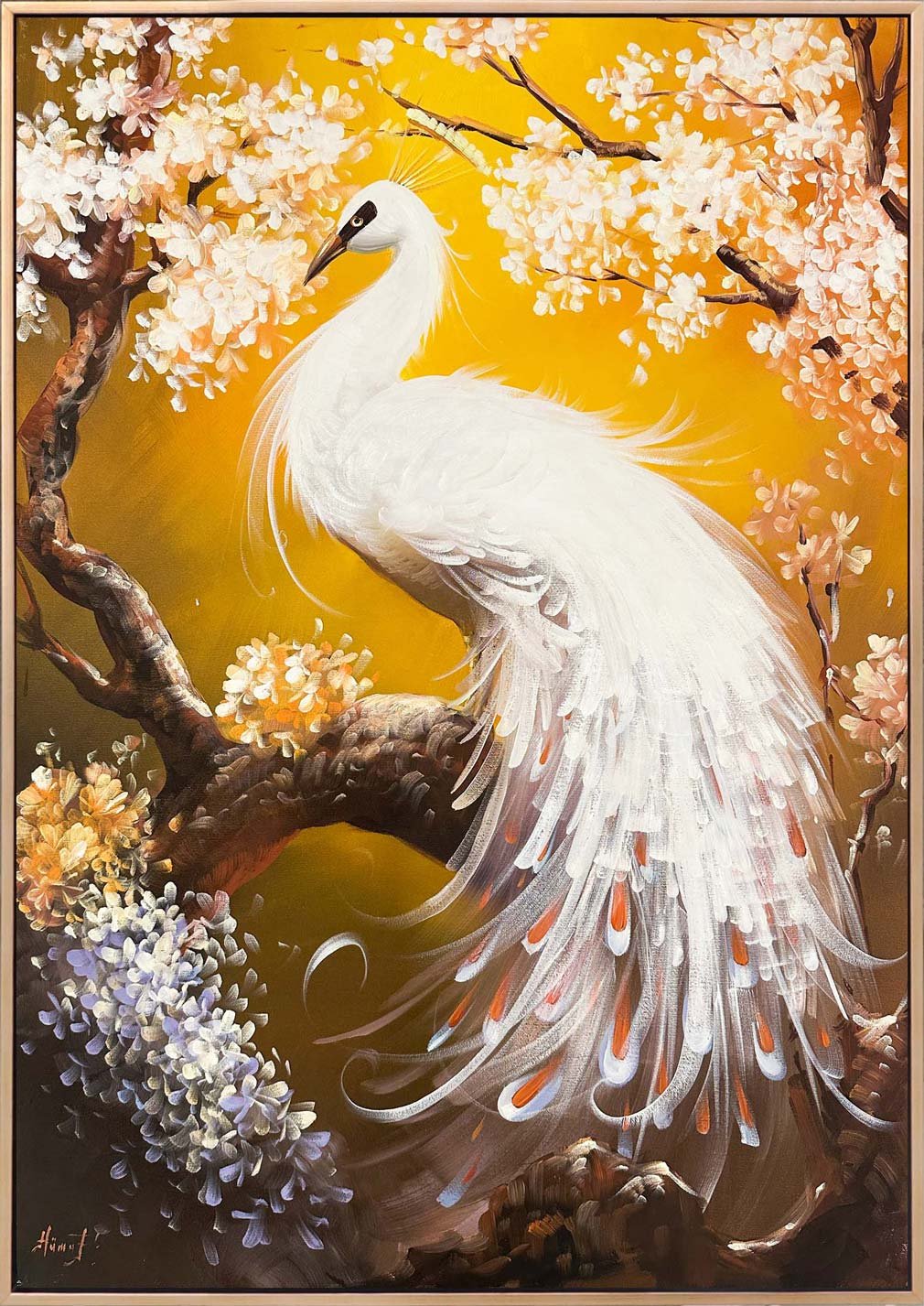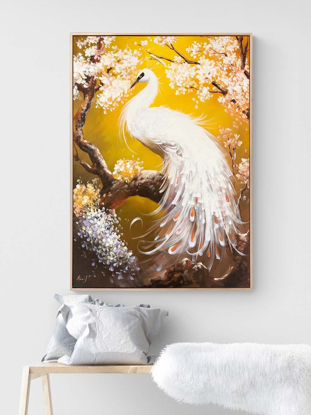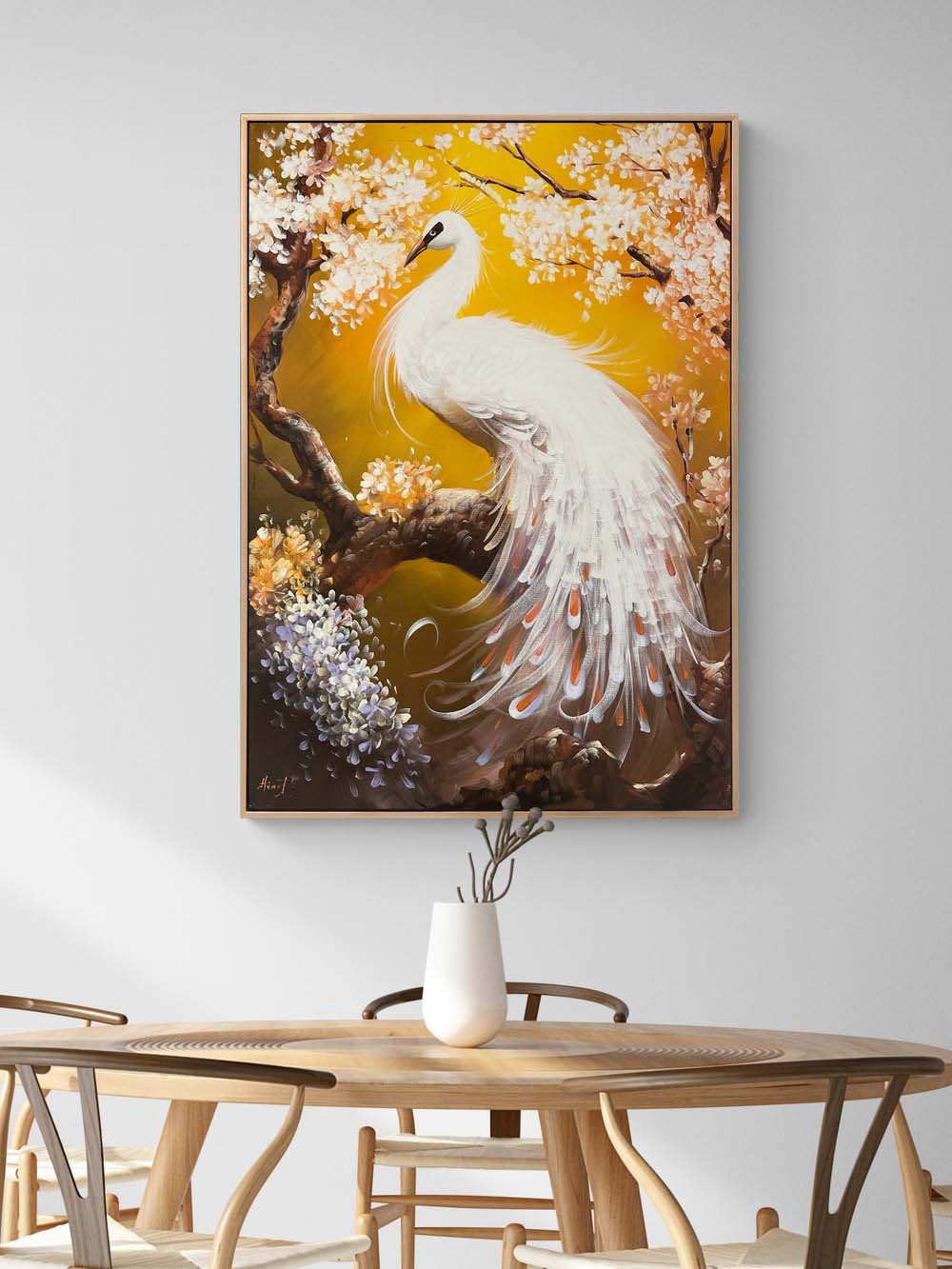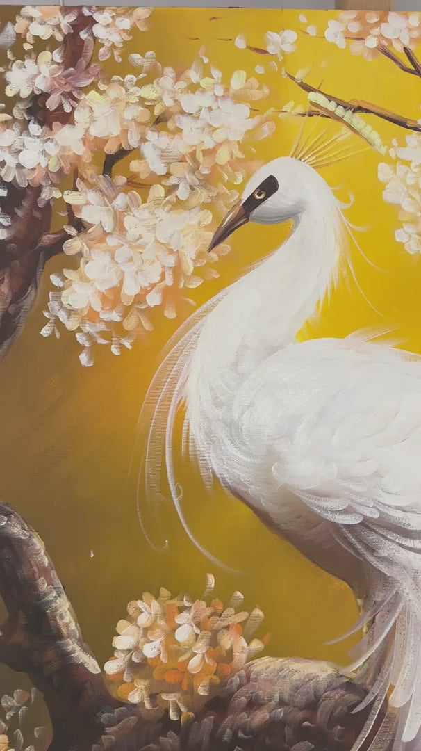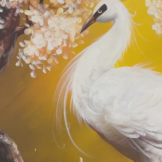 Beyaz Tavus Kuşu Yağlı Boya Tablosu