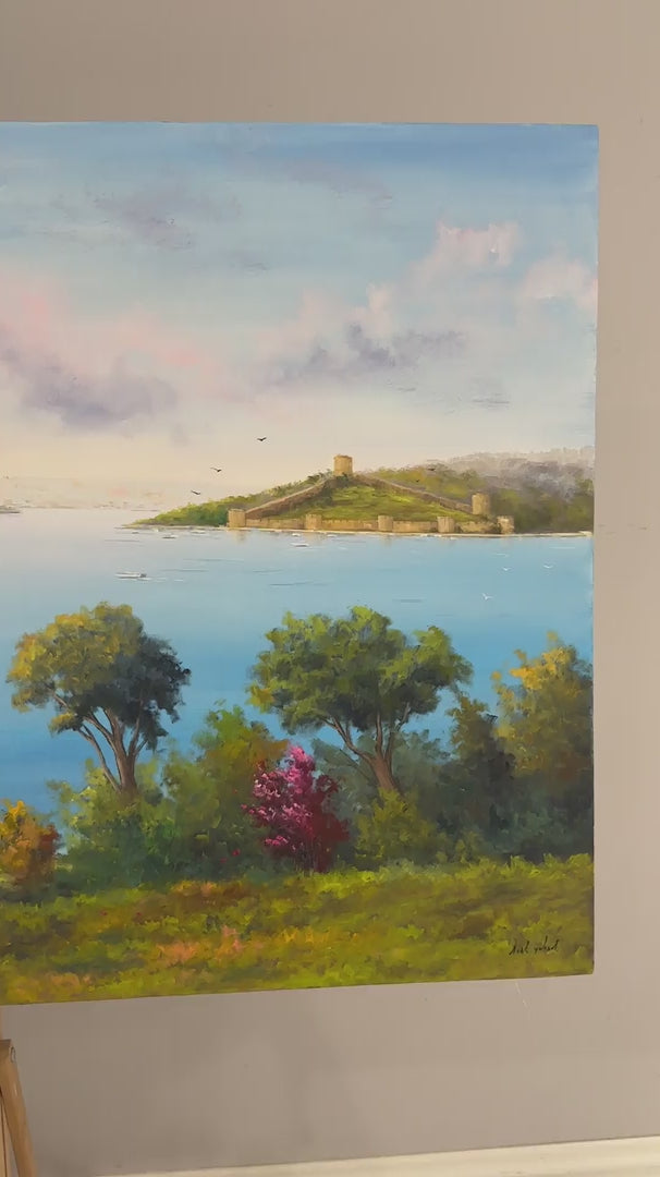 Boğaz ve Deniz Manzarası Yağlı Boya Tablosu