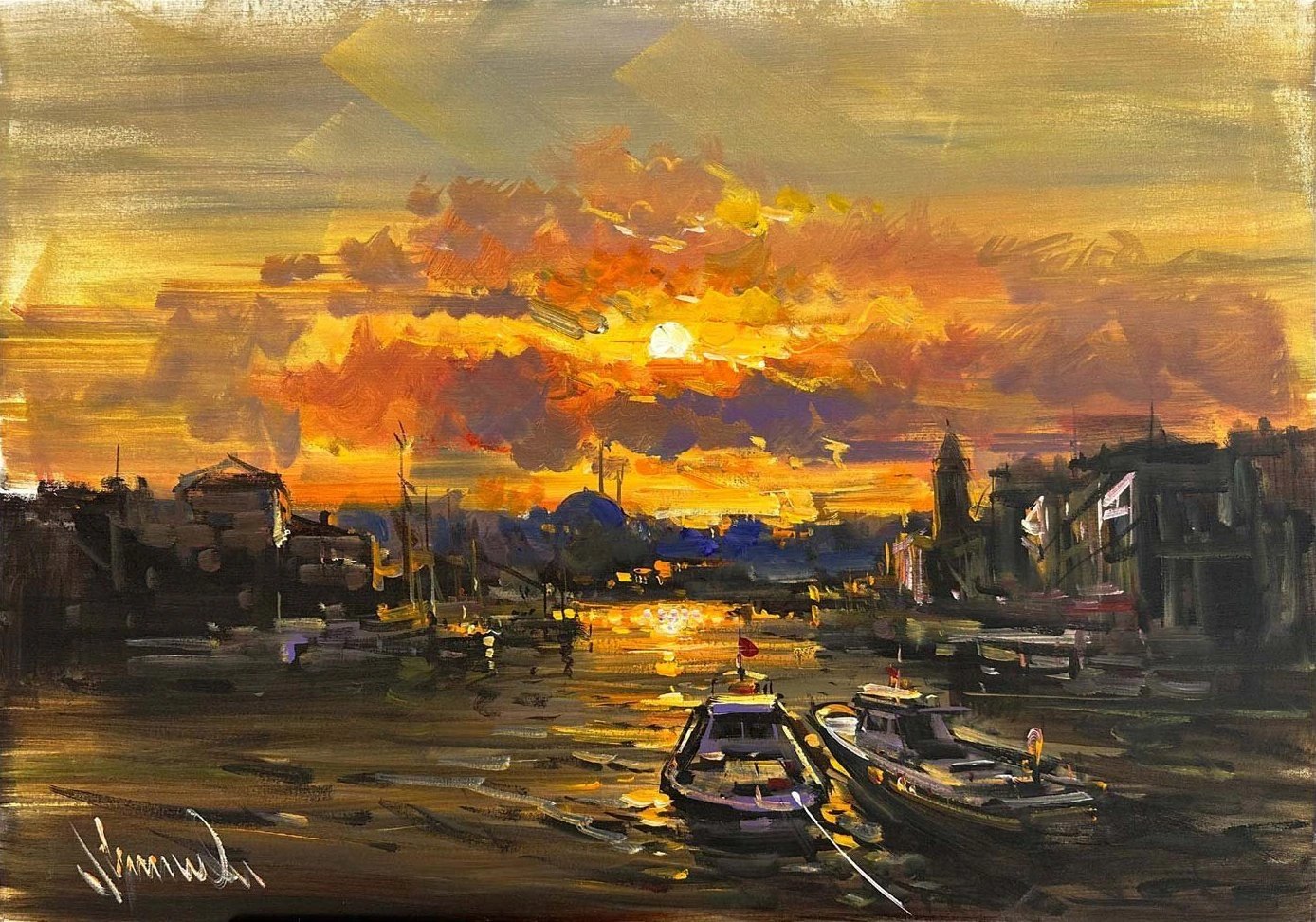 Boğazda Akşam Doğru Yağlı Boya Tablosu