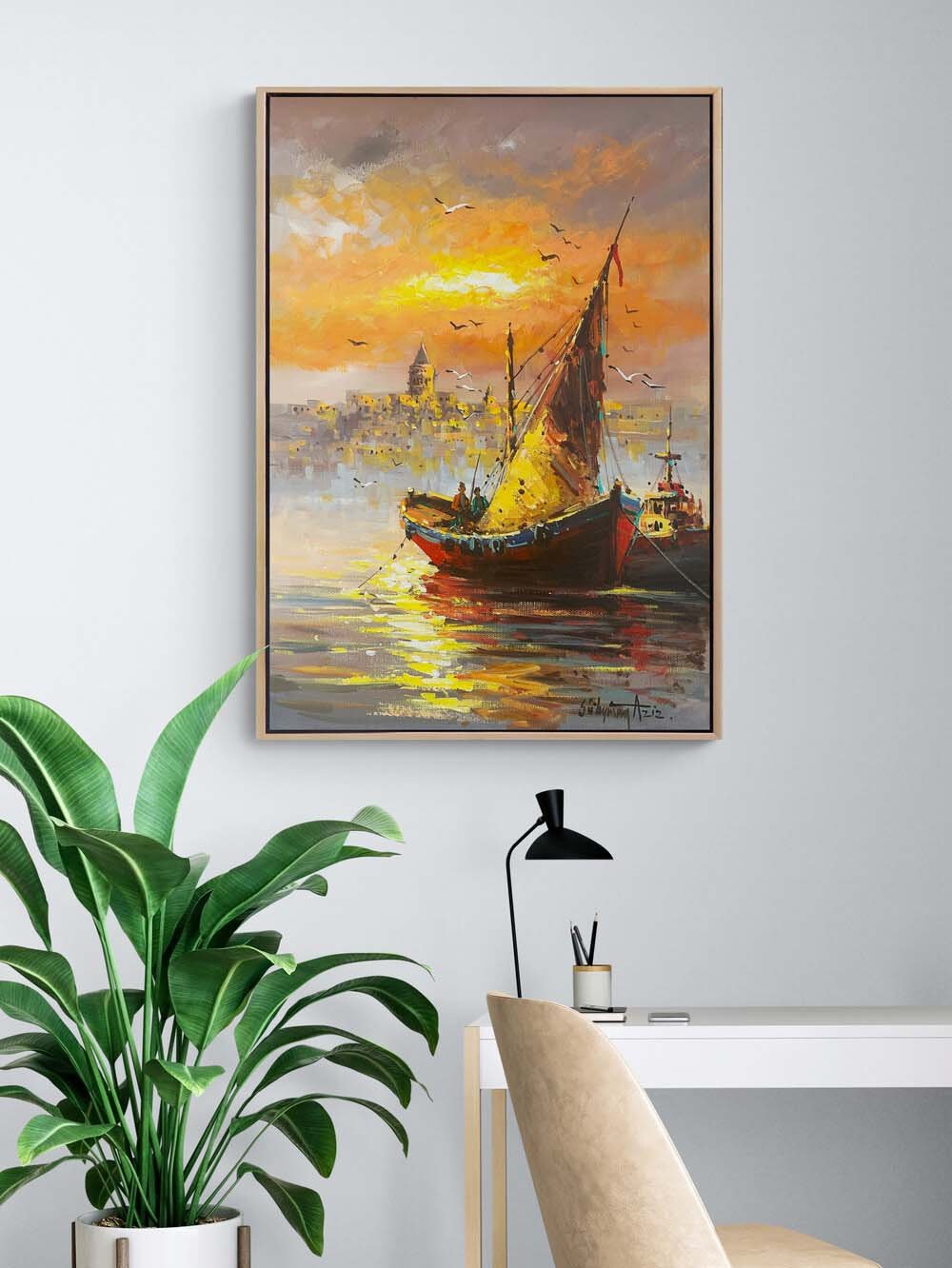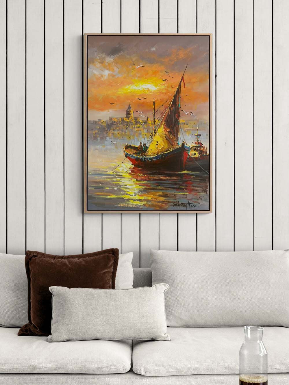 Boğazda Kayıklar Yağlı Boya Tablosu