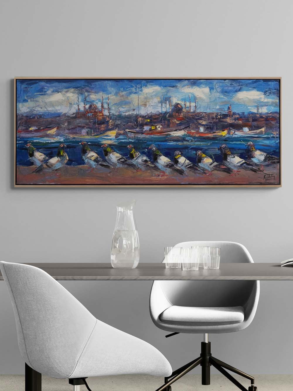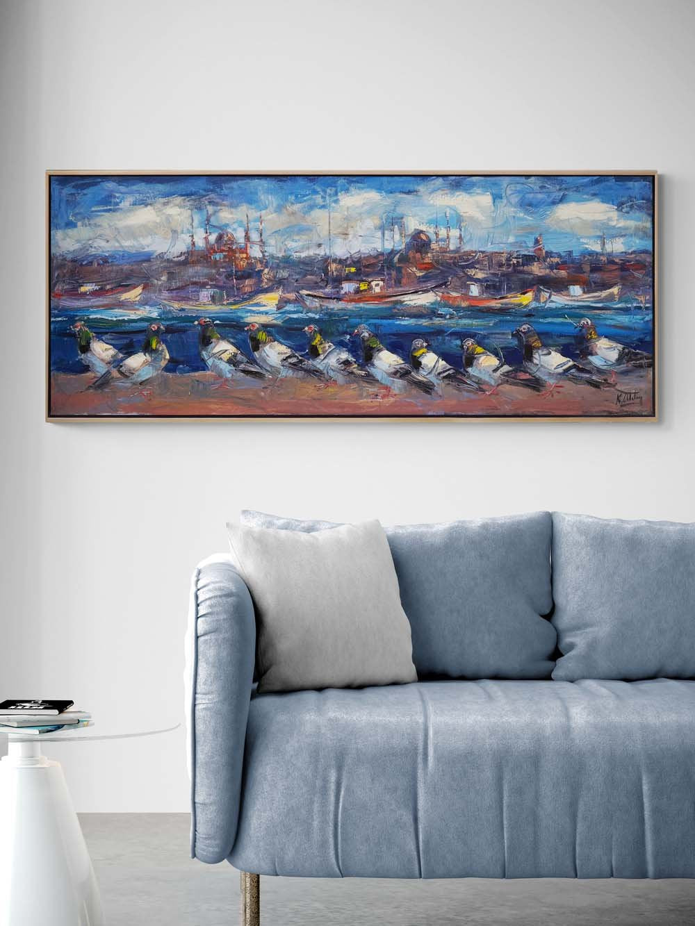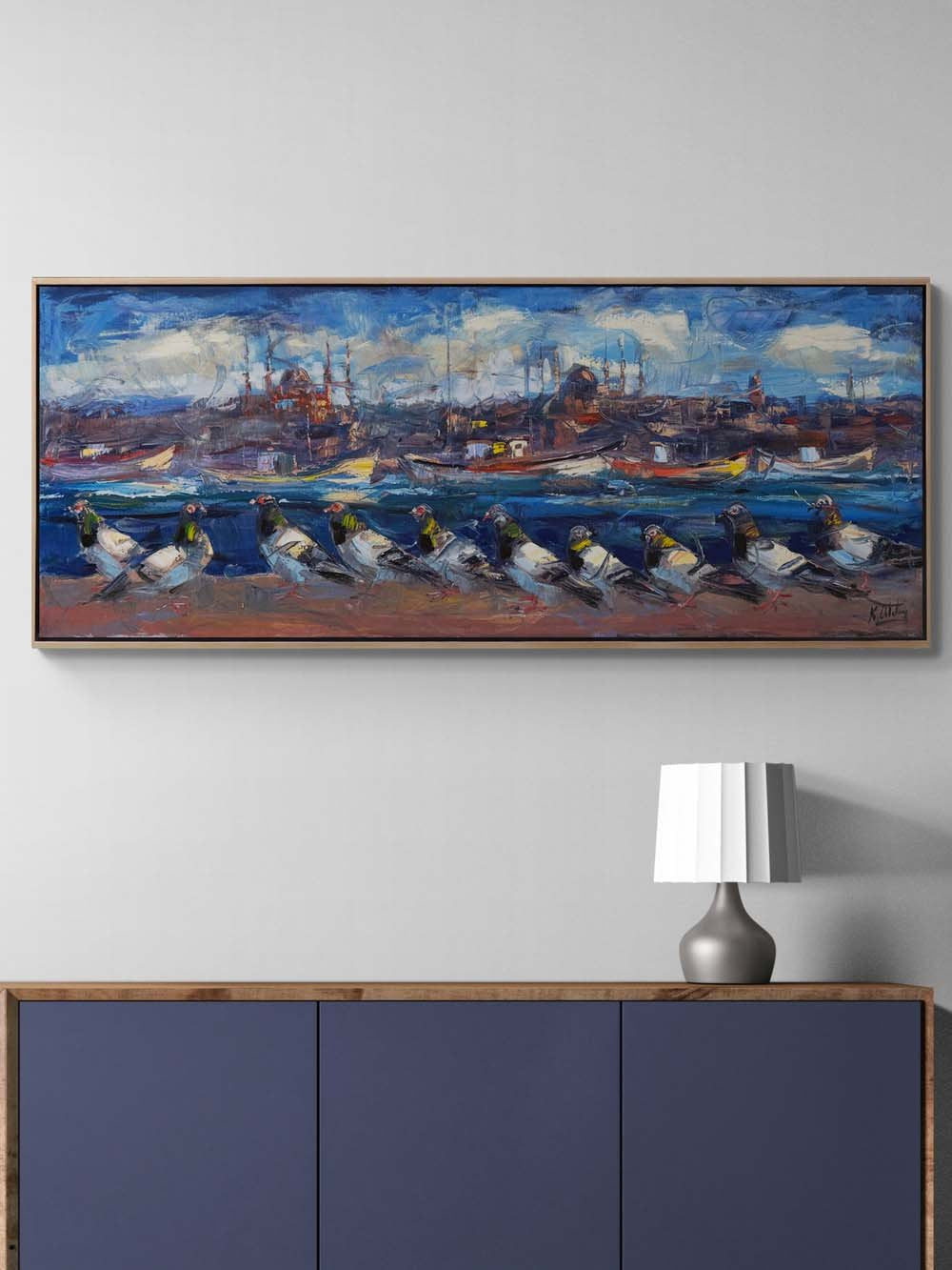 Boğazın Bekçisi Güvercinler Yağlı Boya Tablosu