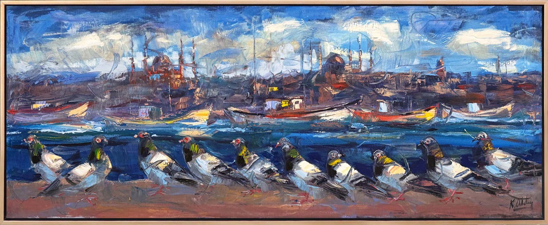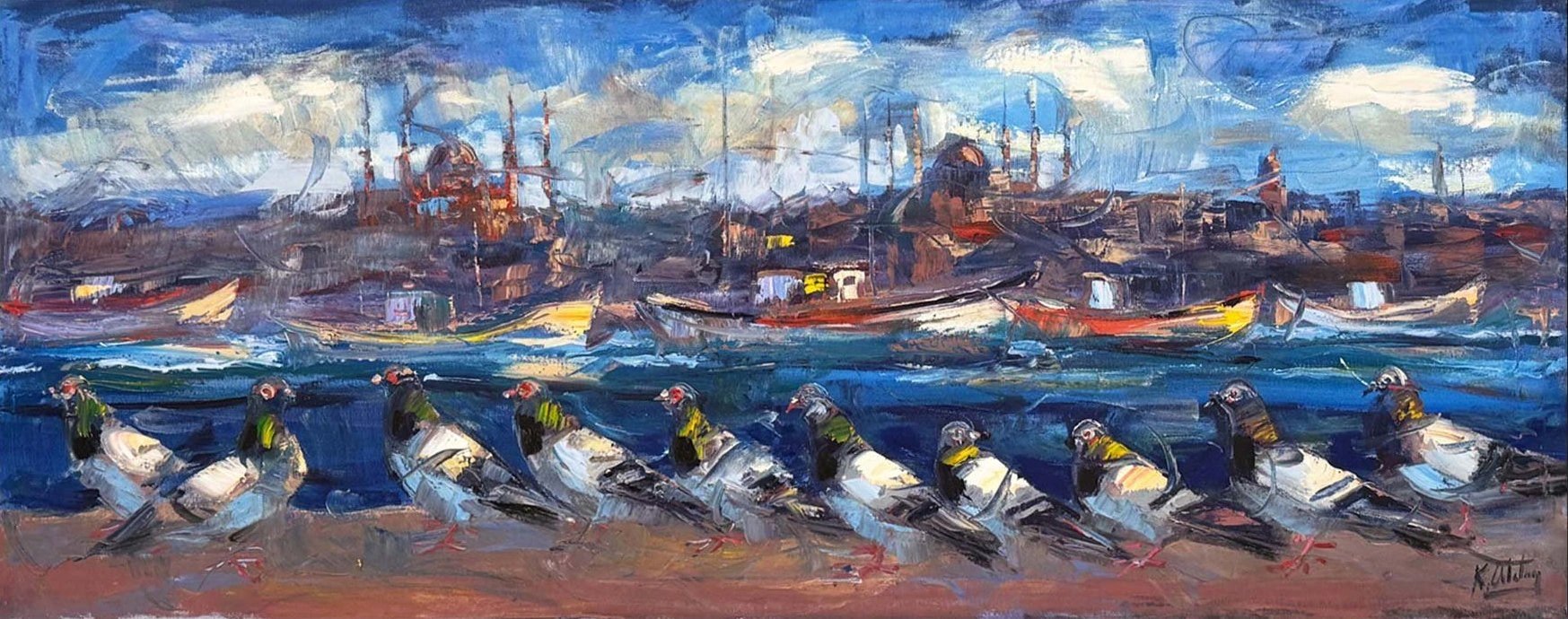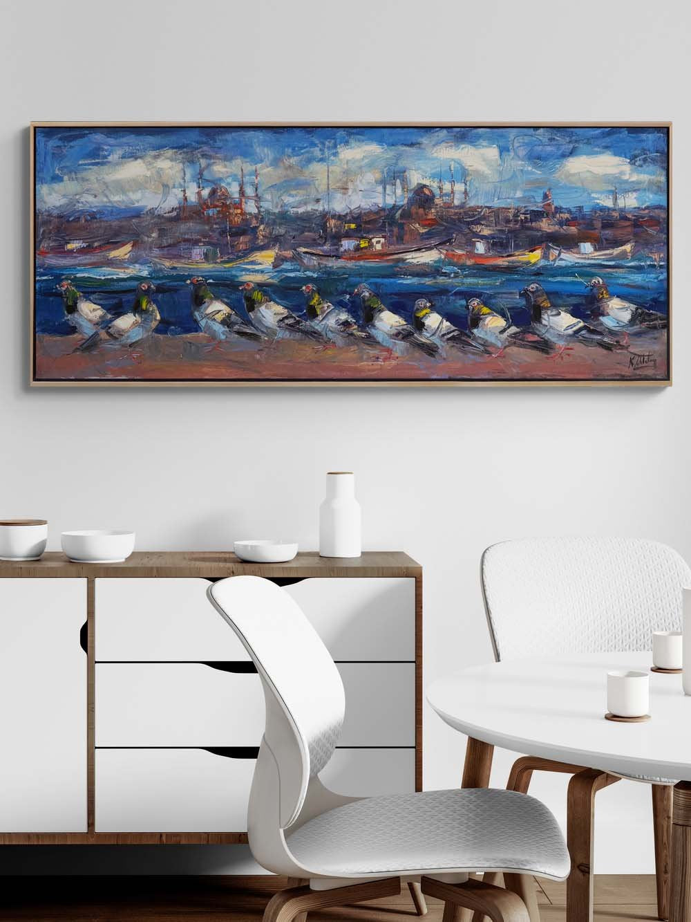 Boğazın Bekçisi Güvercinler Yağlı Boya Tablosu