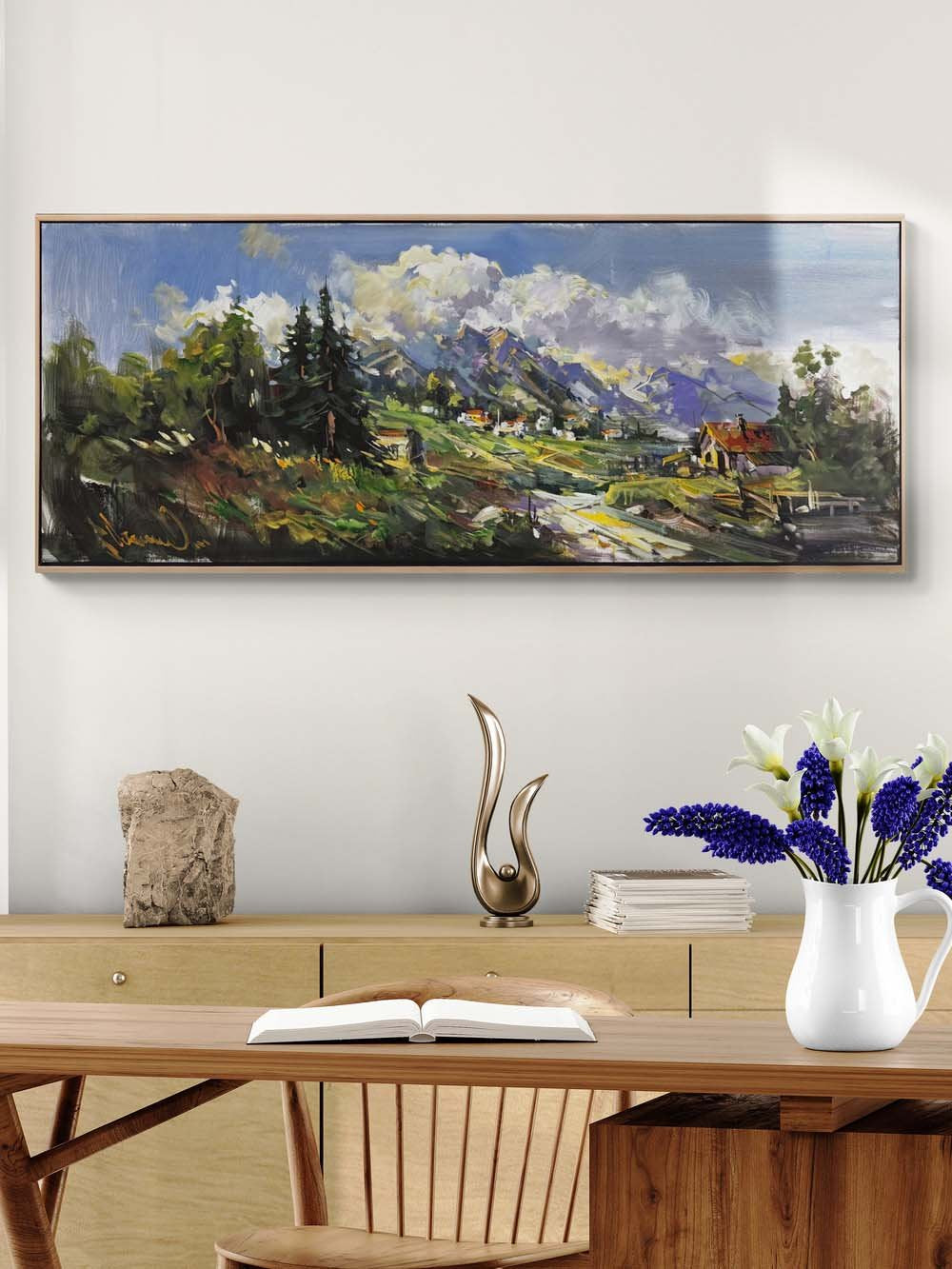 - Özel olarak üretilen 400 gr kalınlığında 1.sınıf sanatsal yağlıboya tuval üzerine çalışılır.