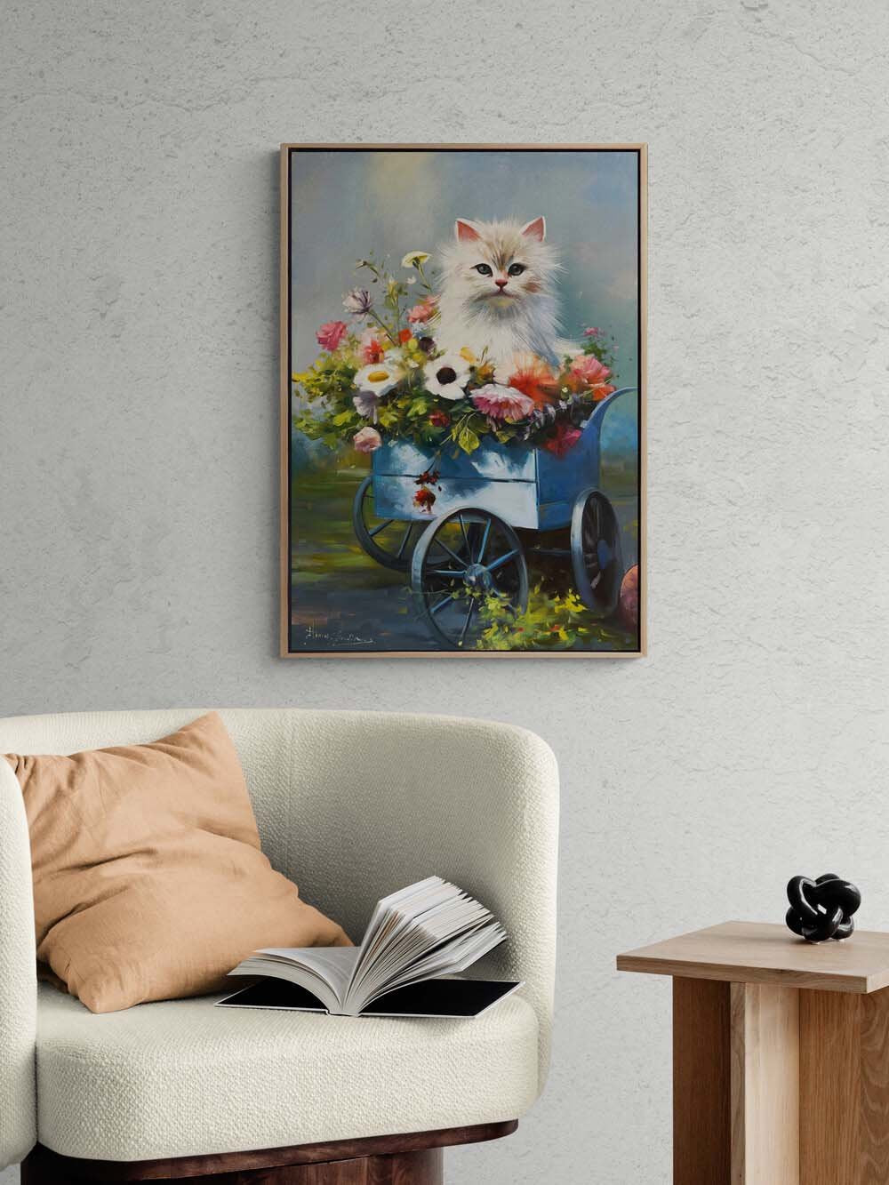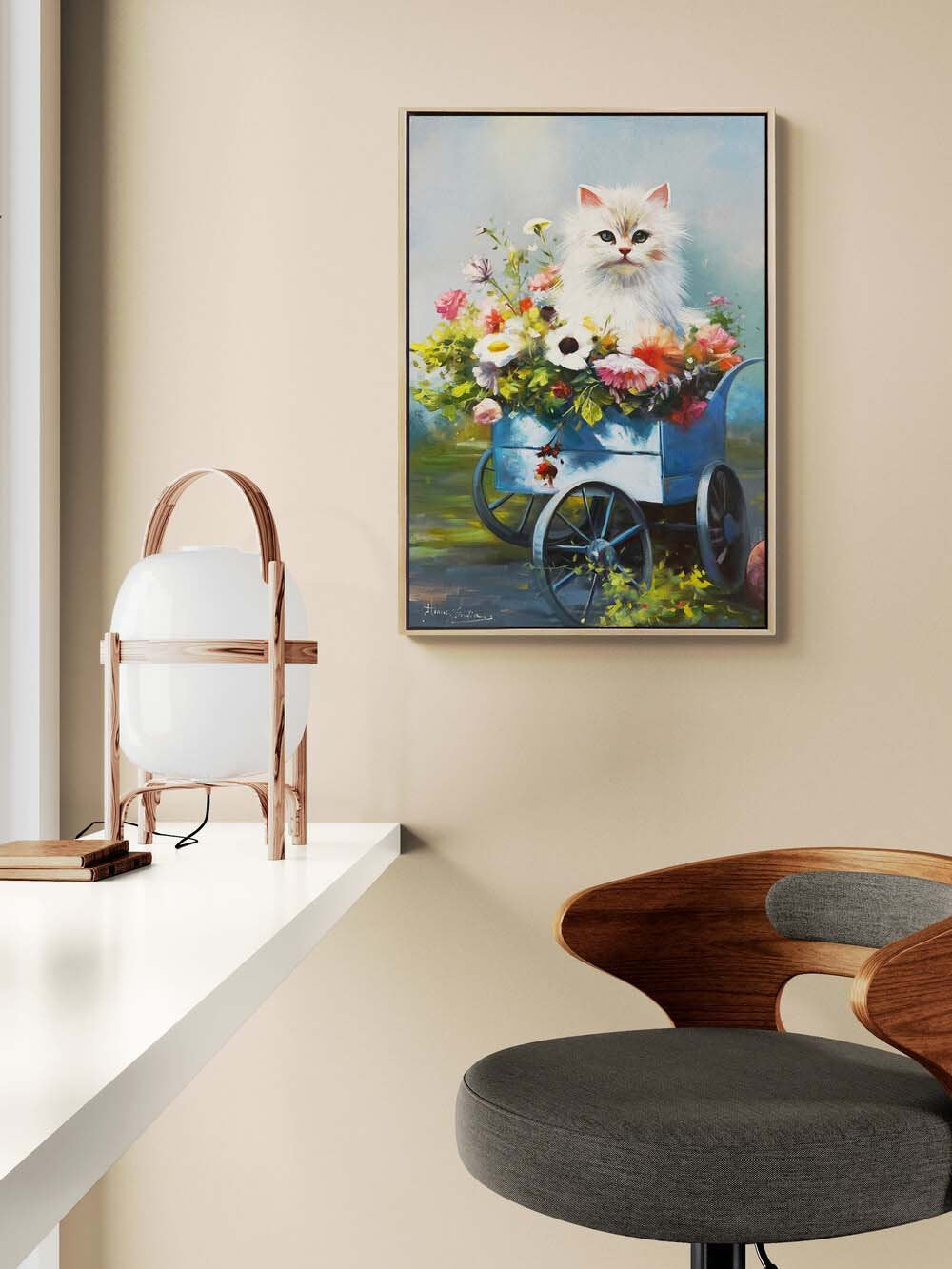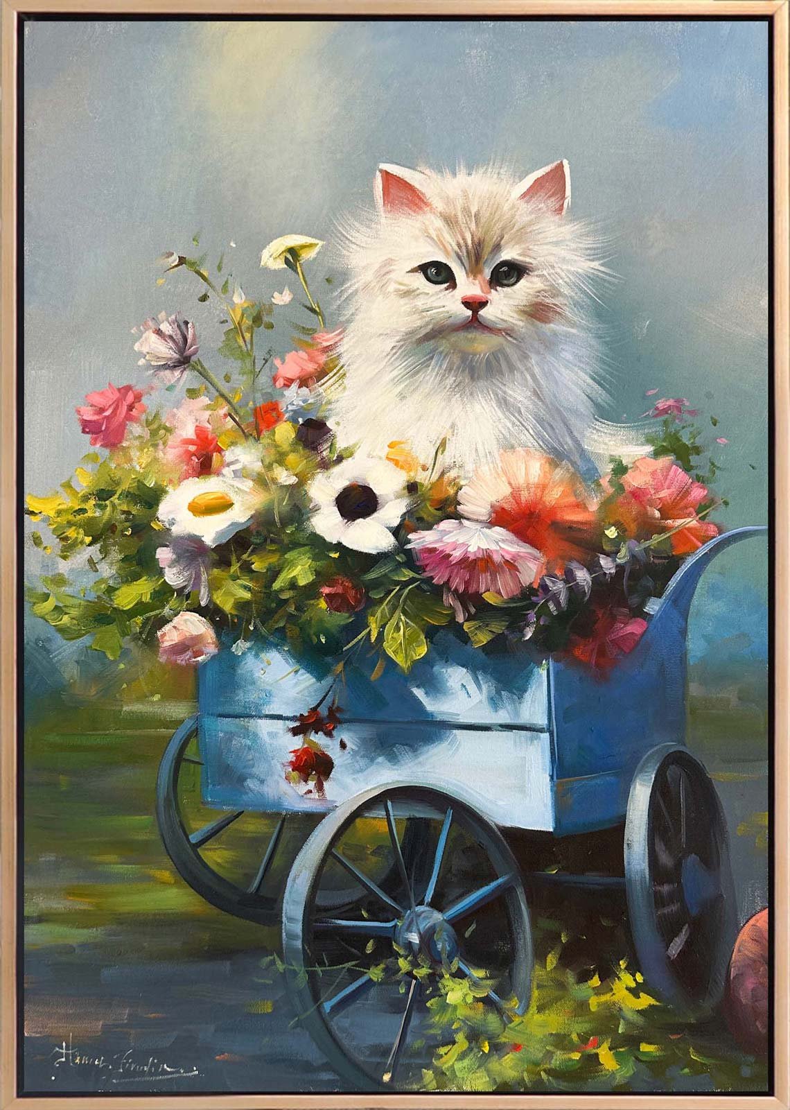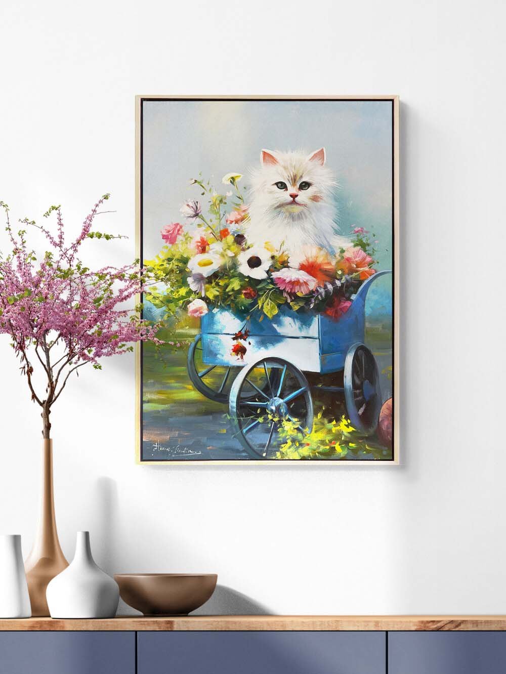 Çiçek Arabasında Bahar Yağlı Boya Tablosu