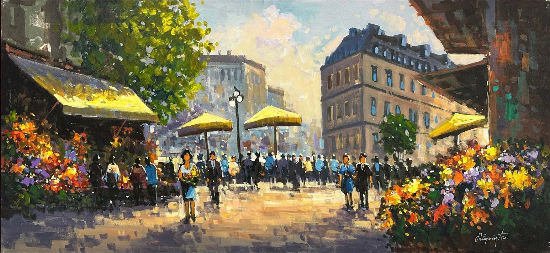 Çiçek Pazarı Sesi Yağlı Boya Tablosu