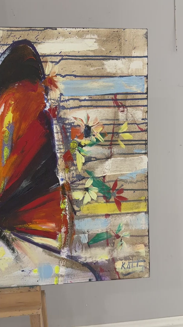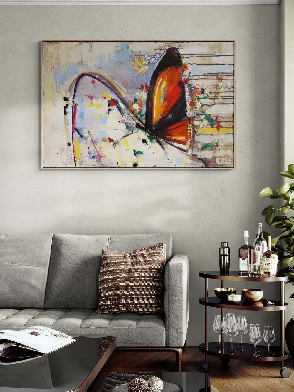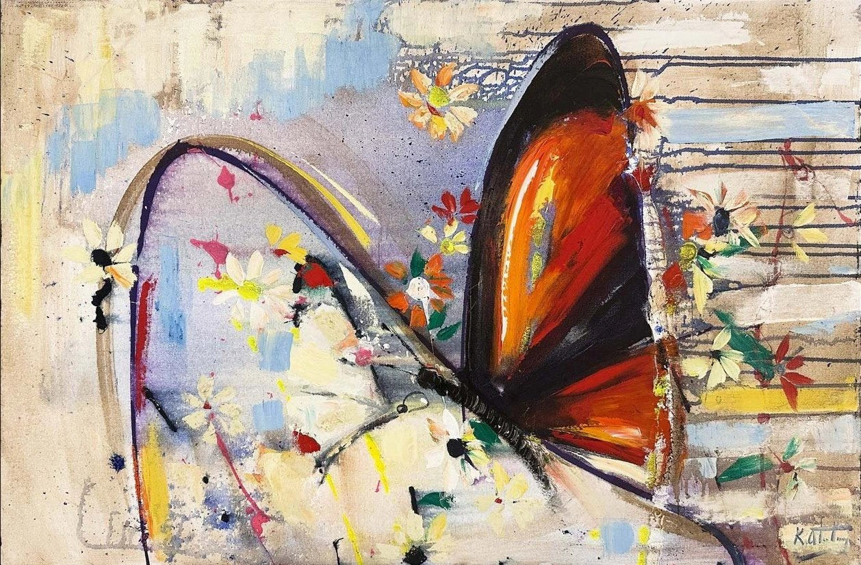 Çiçekler ve Kelebek Yağlı Boya Tablosu