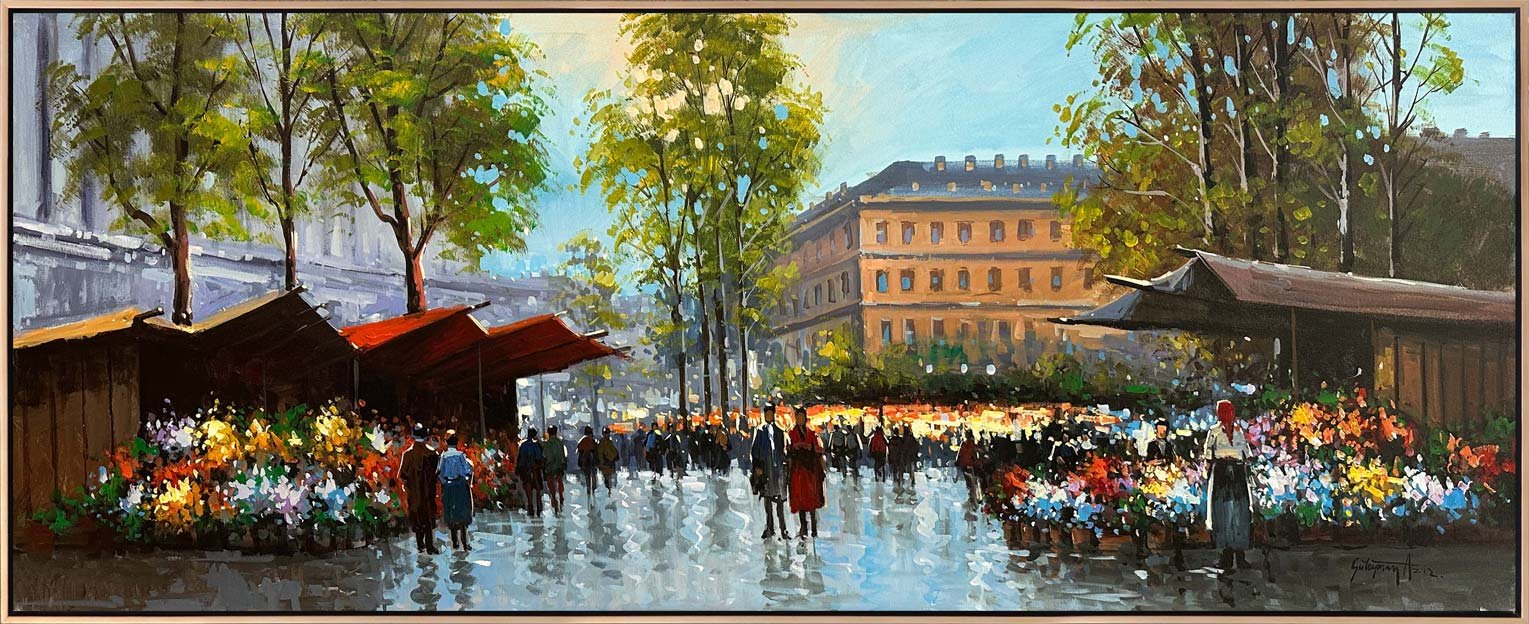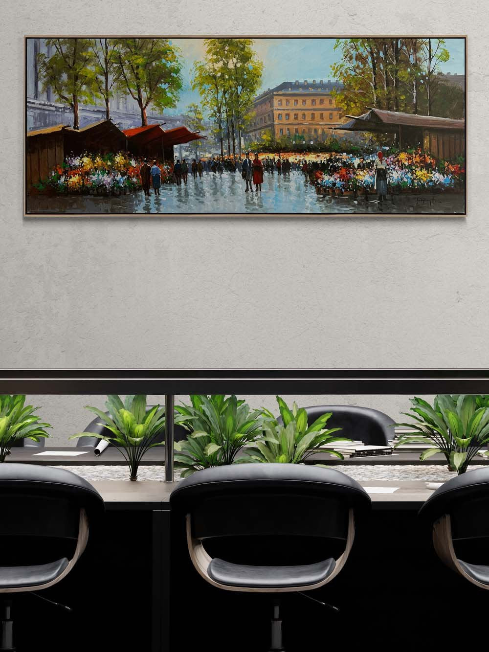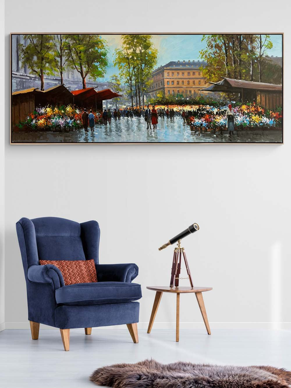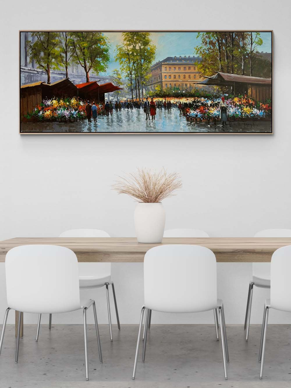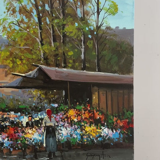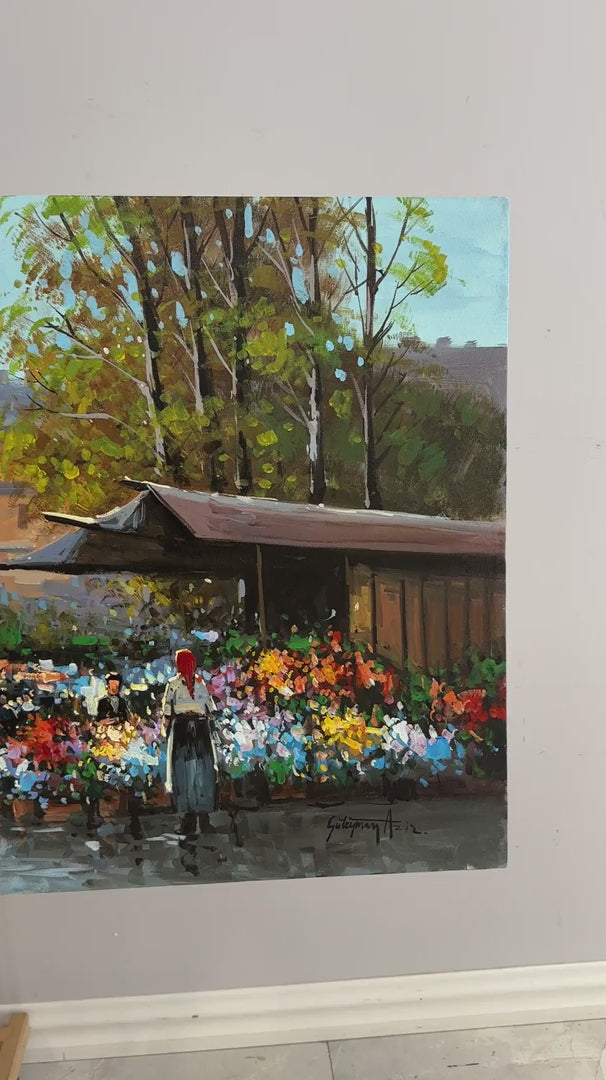 Çiçeklerle Dolu Pazar Yağlı Boya Tablosu