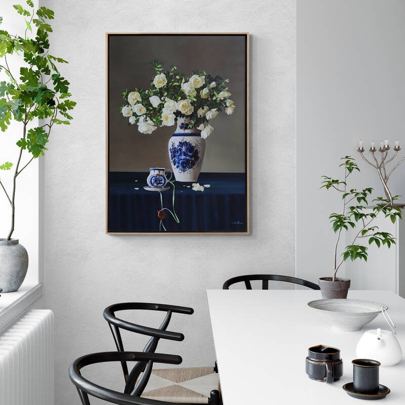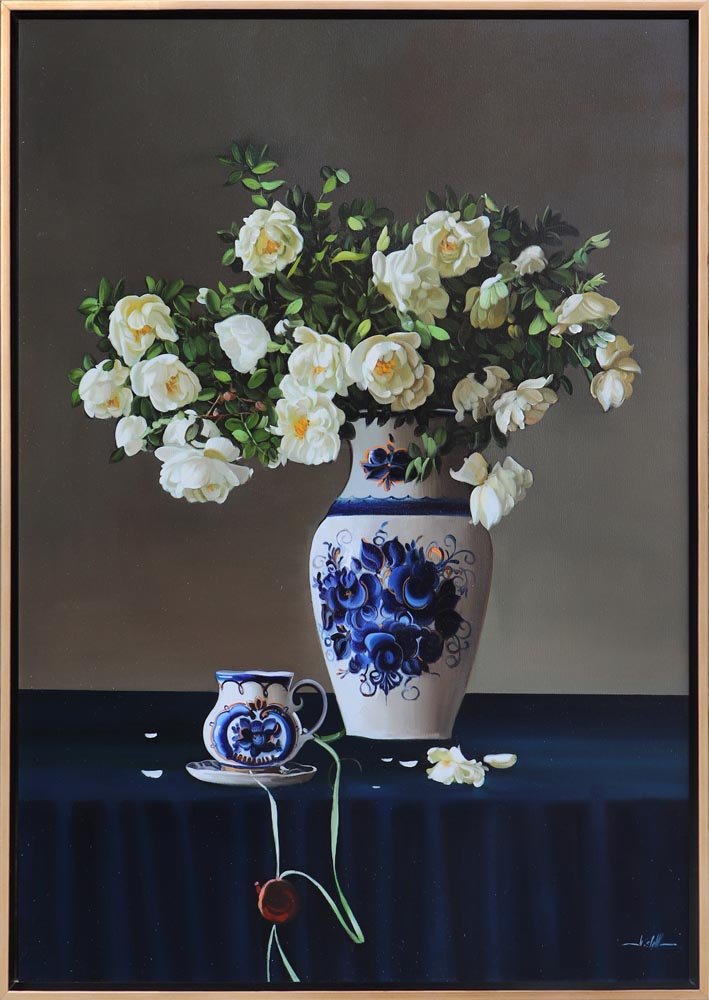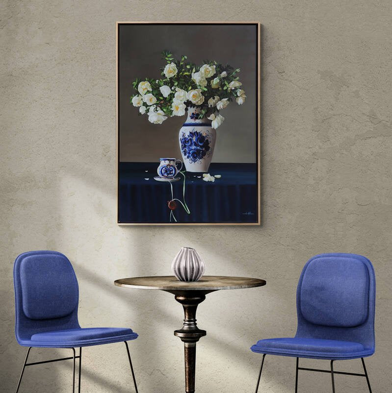 Çini Vazoda Beyaz Güller Siparişe Özel Yağlı Boya Tablo