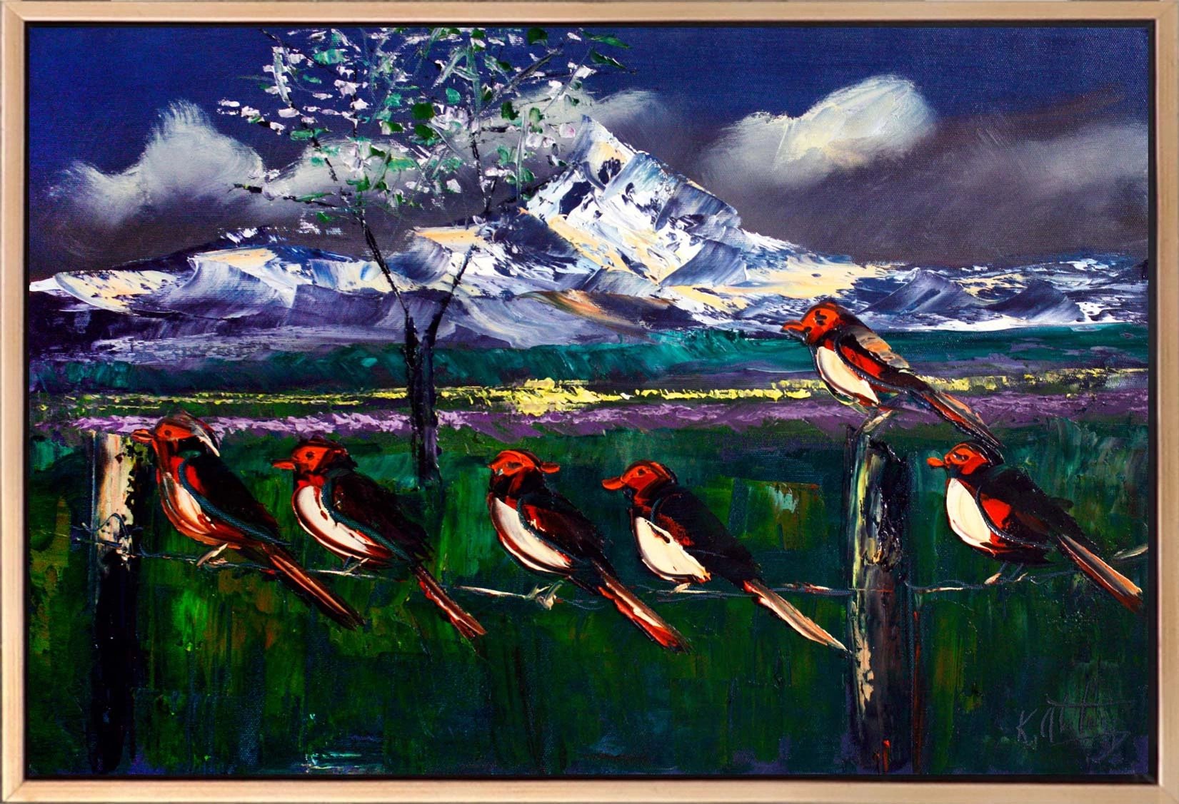 Çitteki Kuşlar Yağlı Boya Tablosu